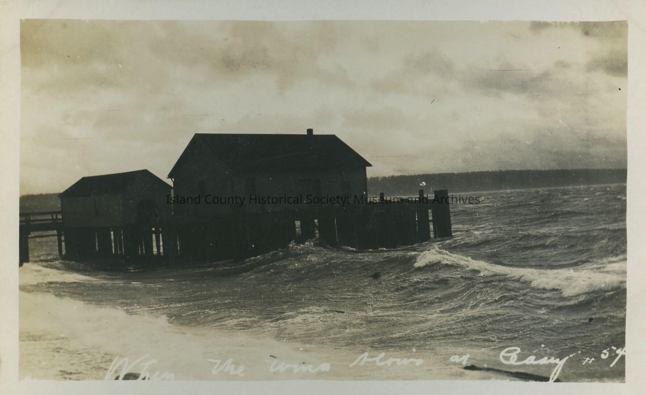 Postcard from Fort Casey. Photo is of a wharf. " When the winds blow at Casey"Collection