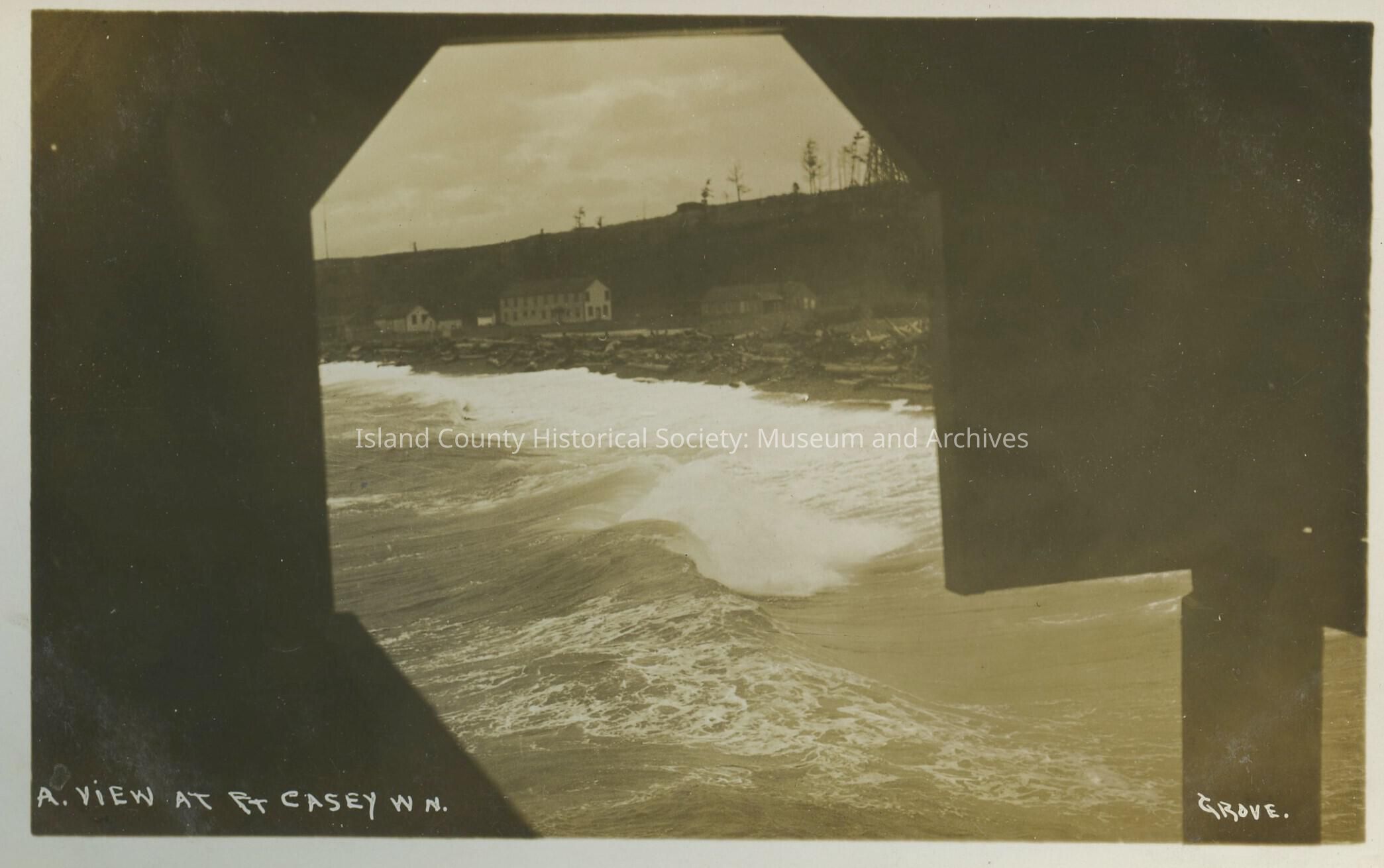 Postcard from Fort Casey. Photo is of the fort from the water.Collection