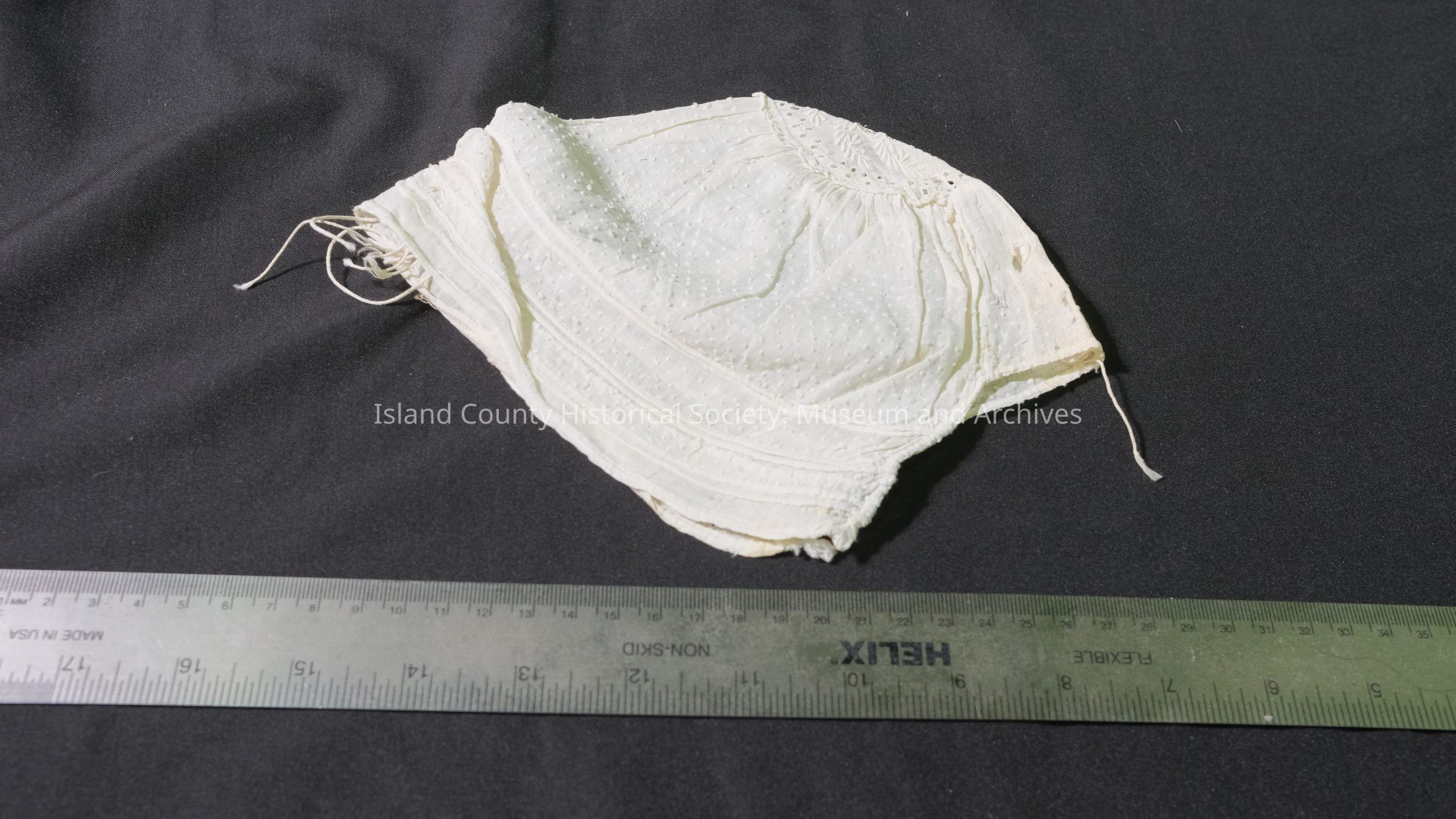 a - Dotted Swiss baby cap. Per box listing: made by Edith Kellogg.