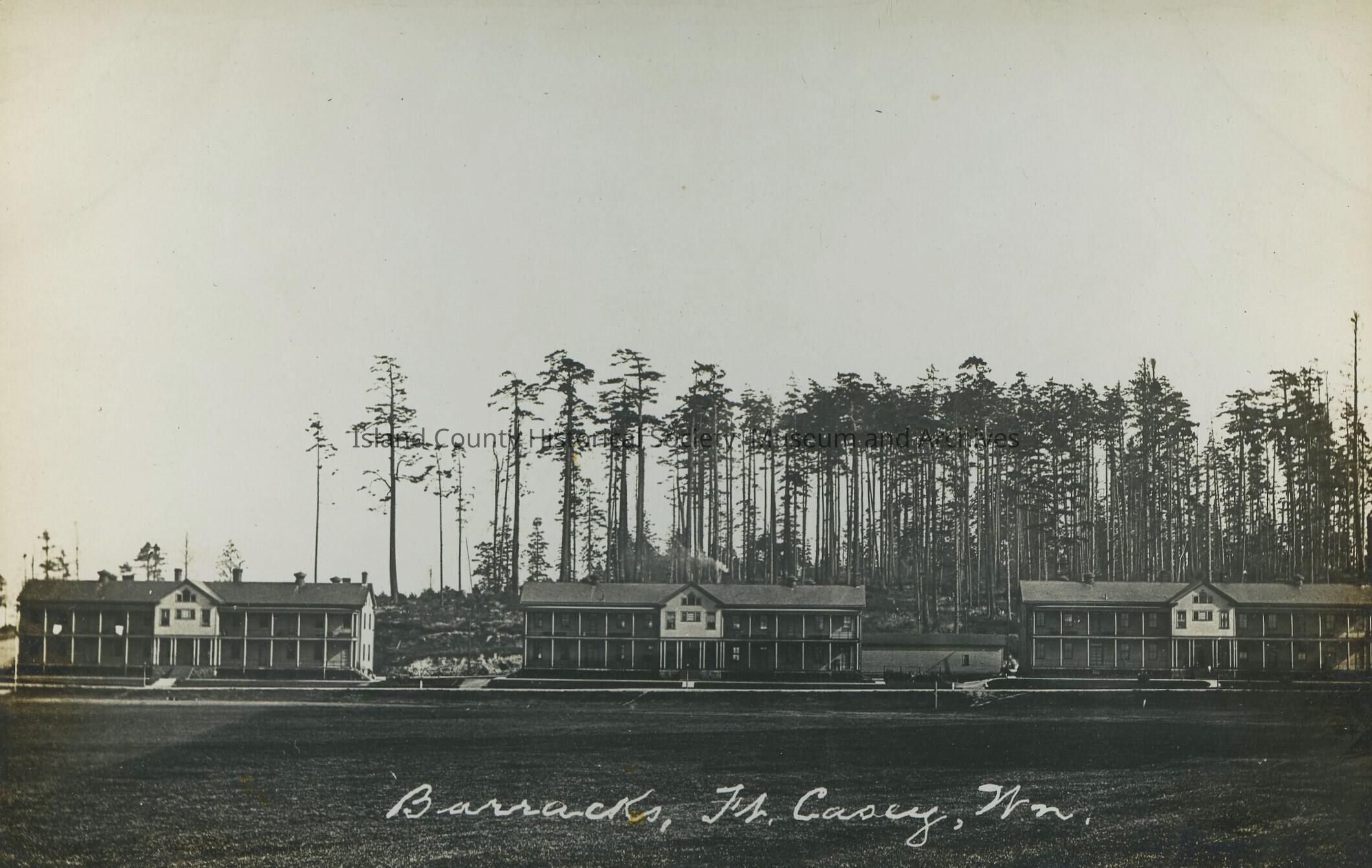 Postcard from Fort Casey. Photo is of the barracks.Collection