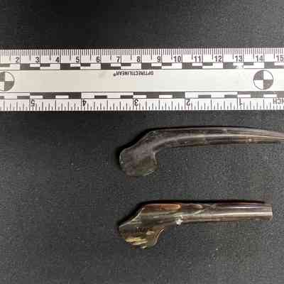 Unknown drilled object, possibly fishing tool, not stone, possibly horn.