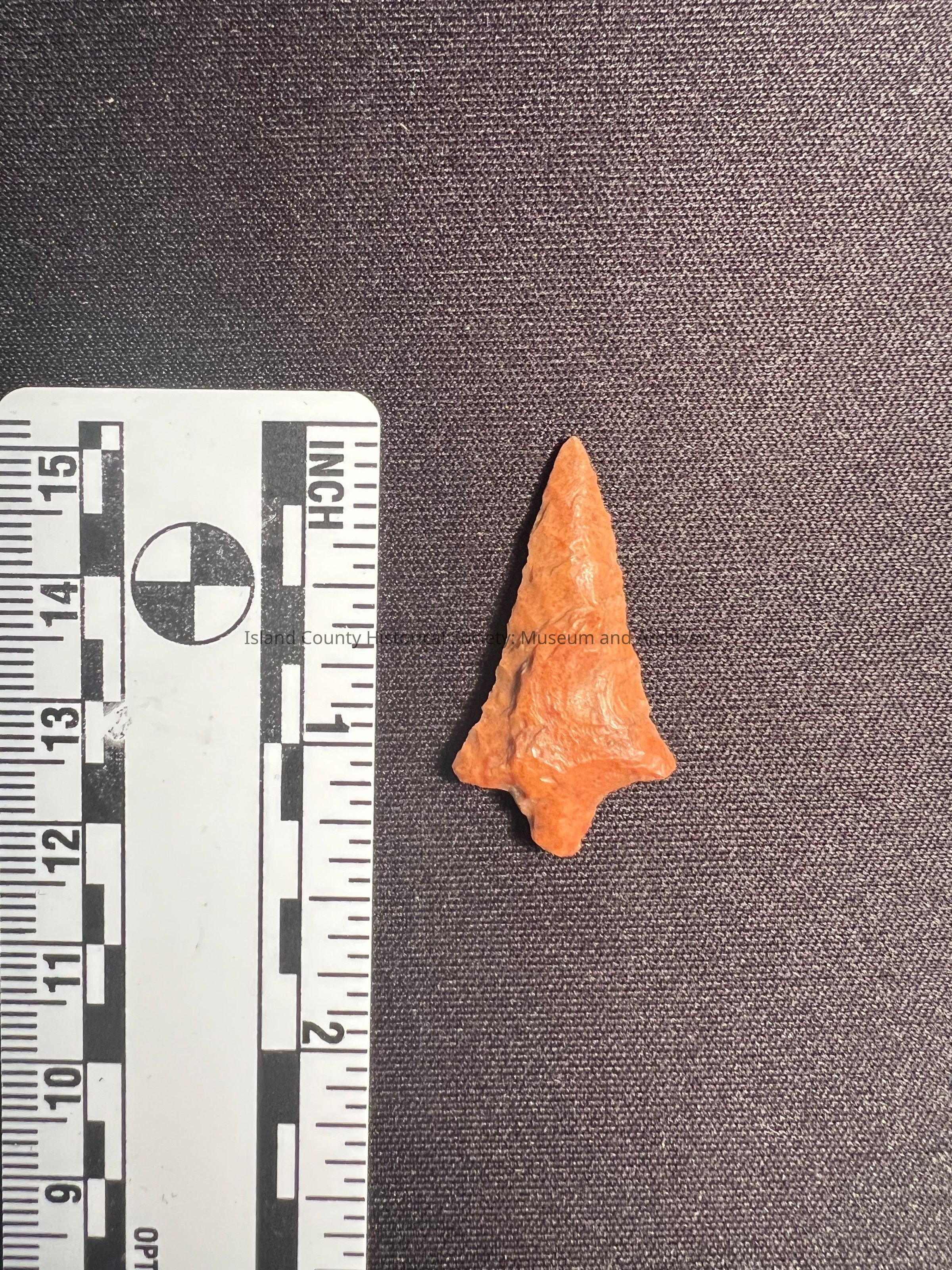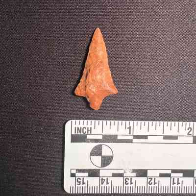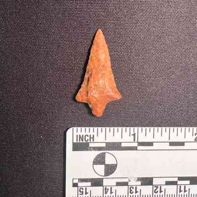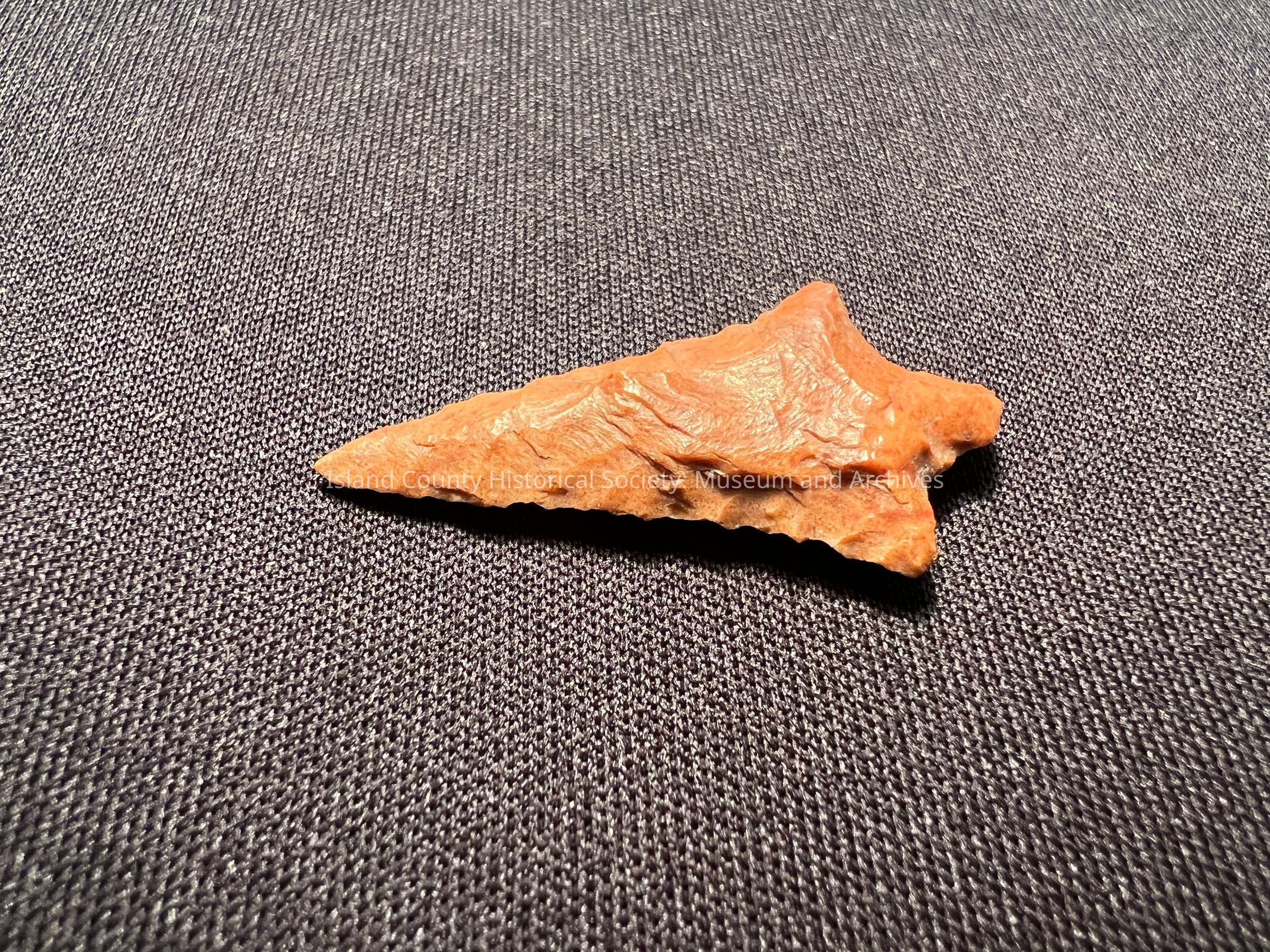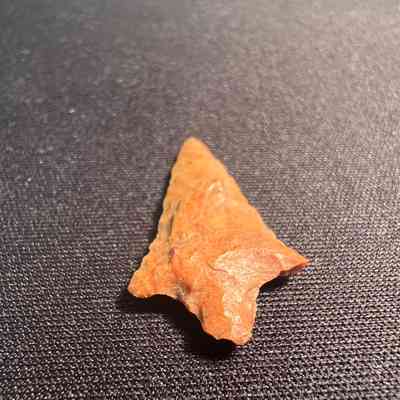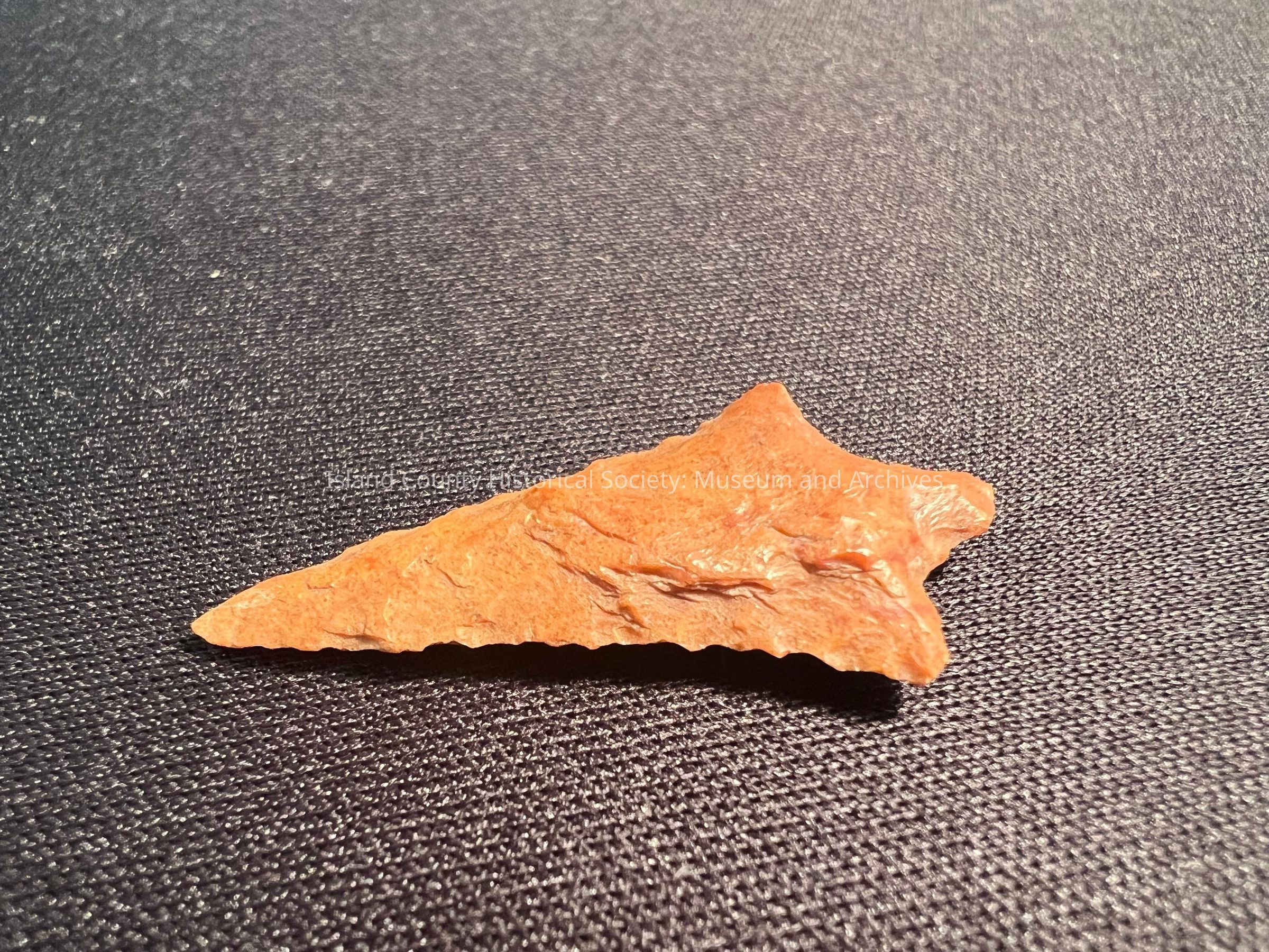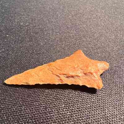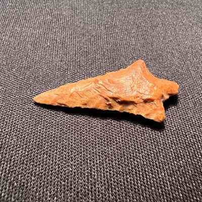 Rabbit Island Stemmed Point from the Columbia River. 1,500-3,000 years old. Red to orange hue.