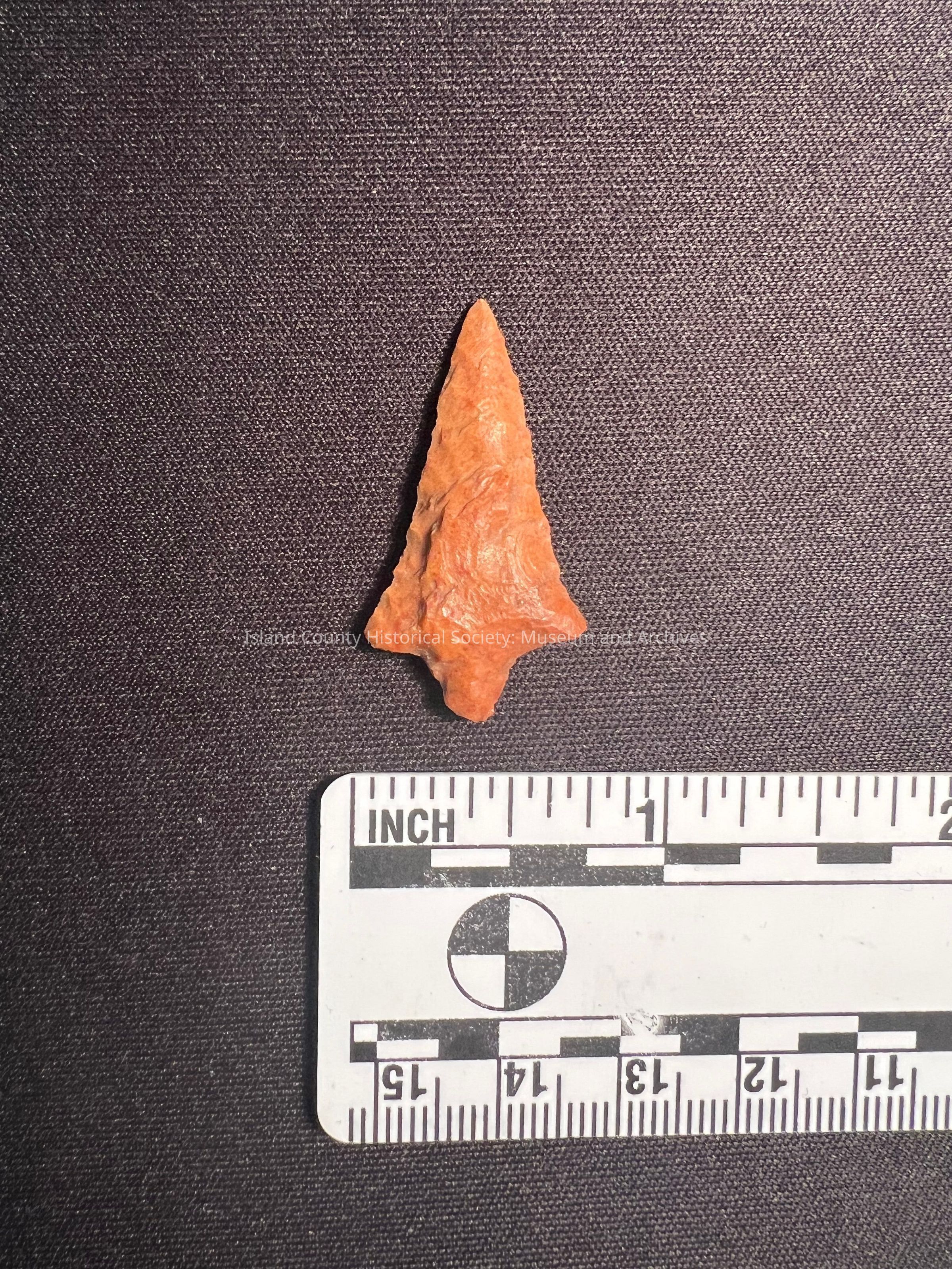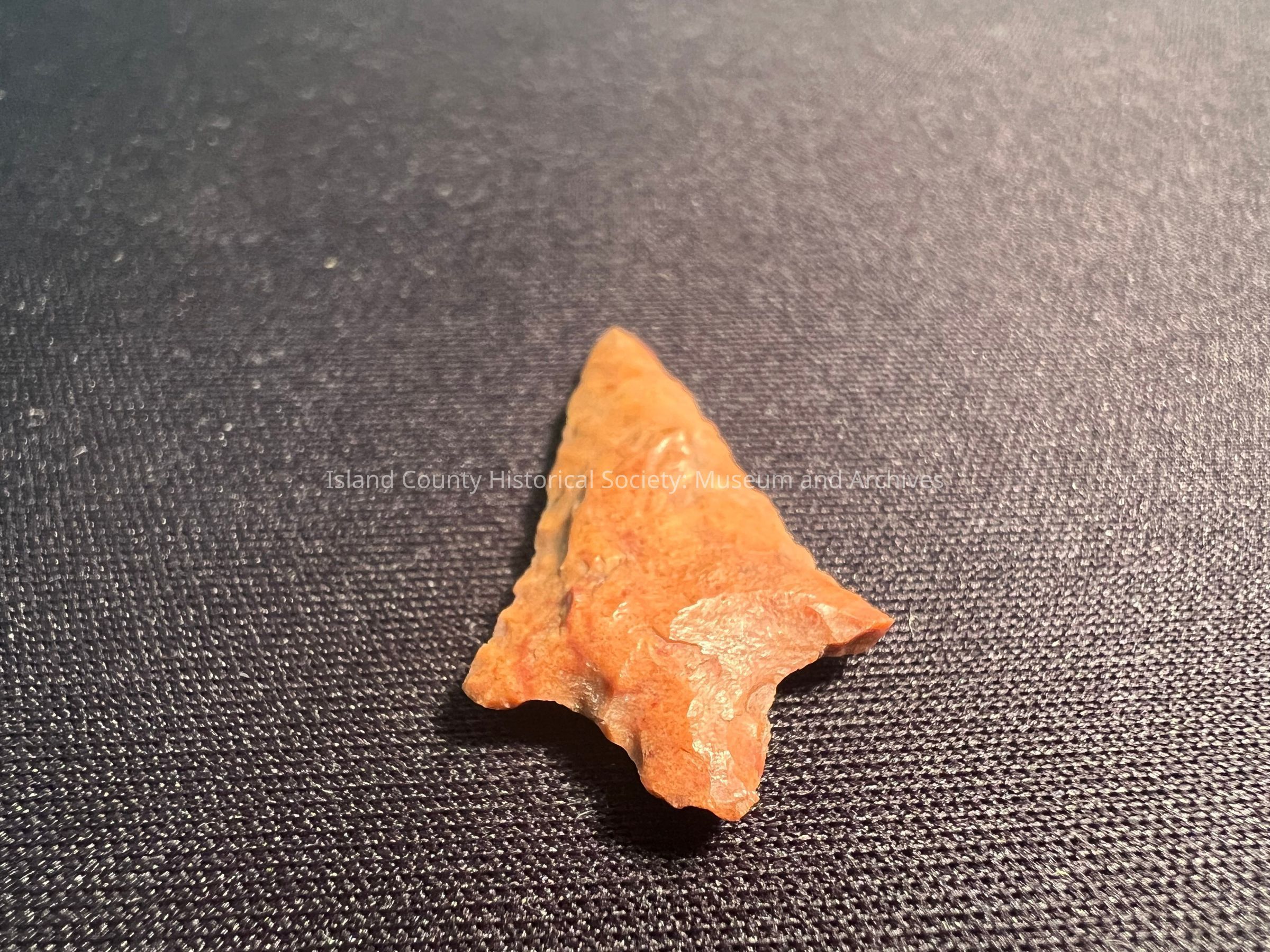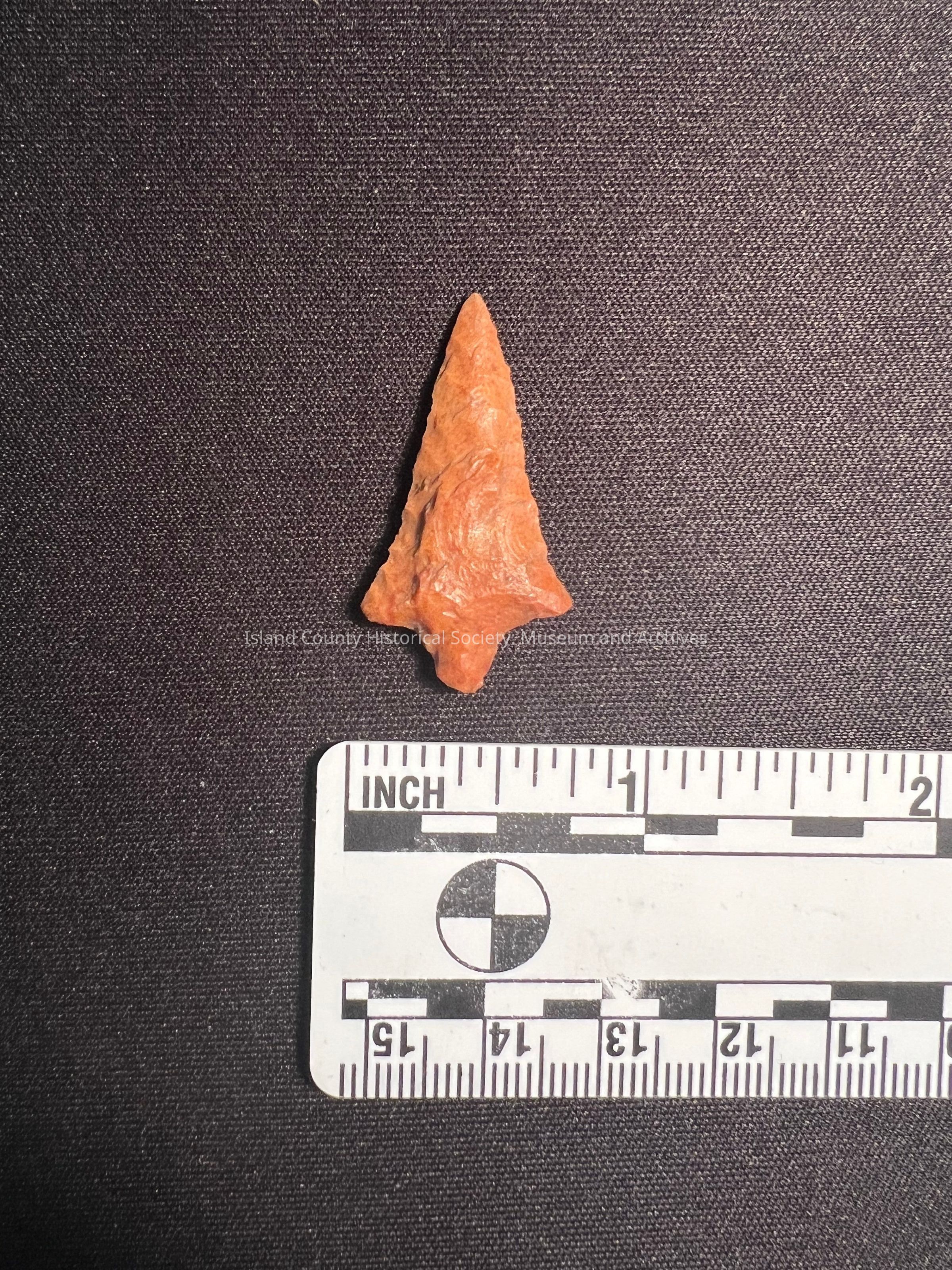 Rabbit Island Stemmed Point from the Columbia River. 1,500-3,000 years old. Red to orange hue.