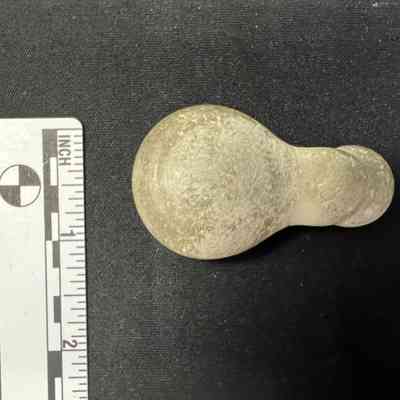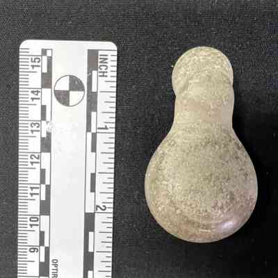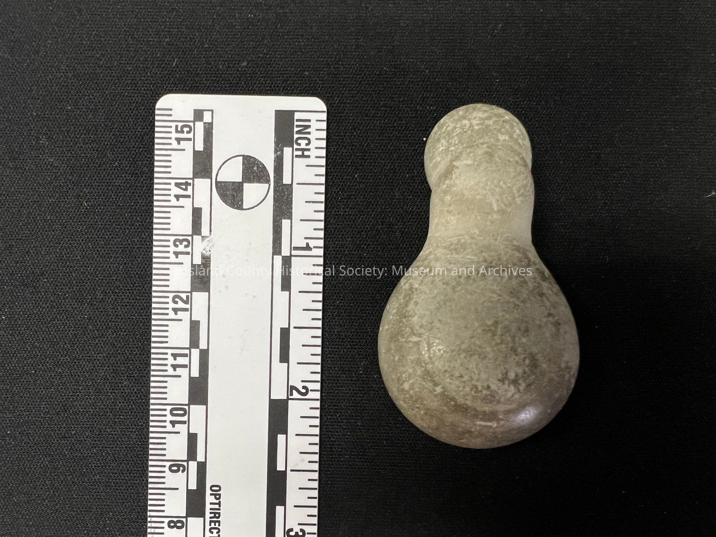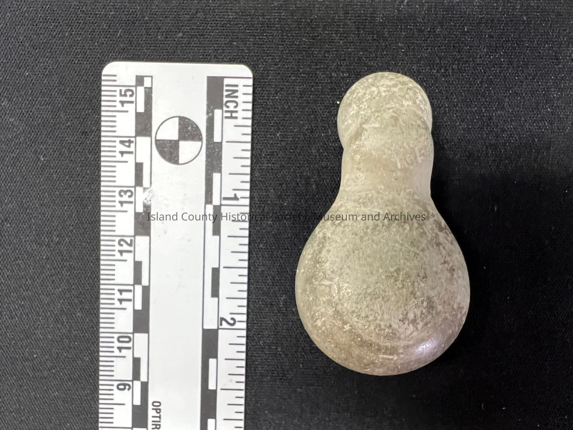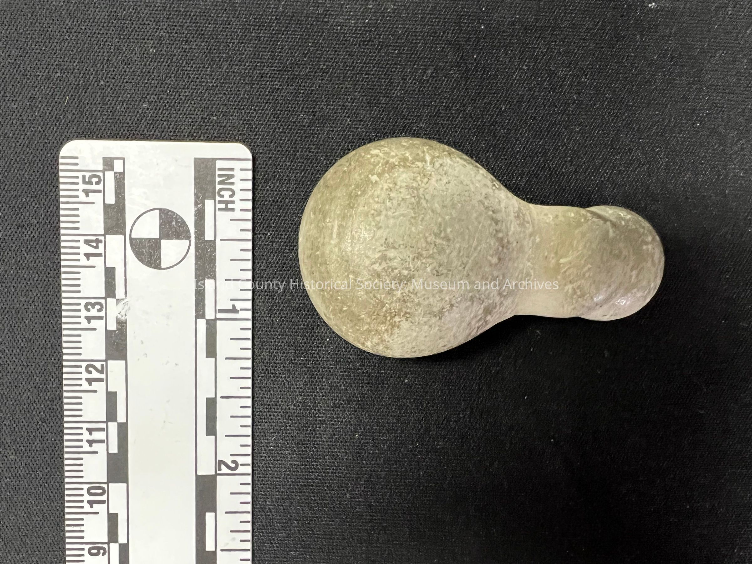 Possibly repurposed small mud stone concretion. Found on the Olympic Peninsula, Islands, Whidbey Island. Very pale in color.Collection