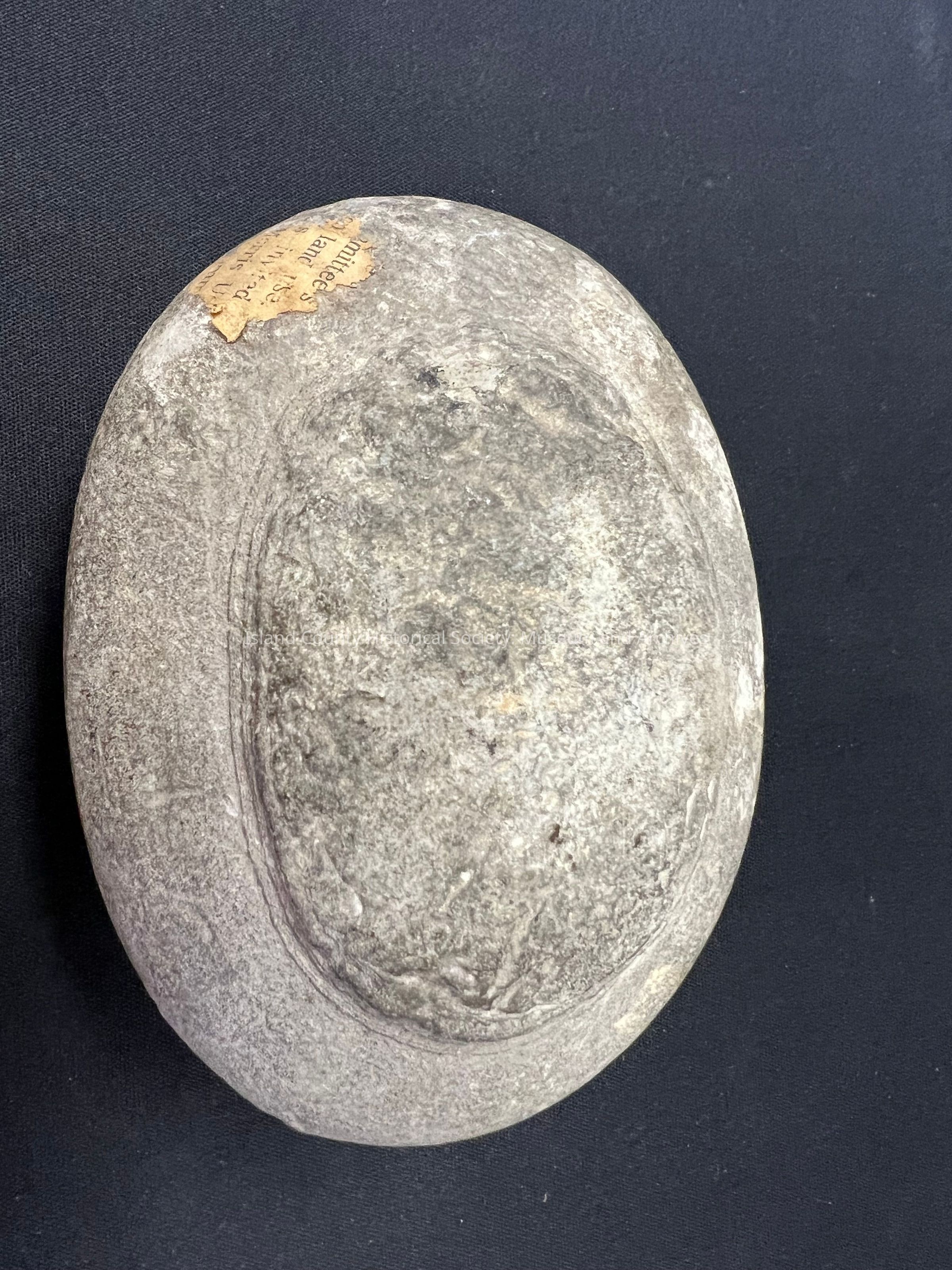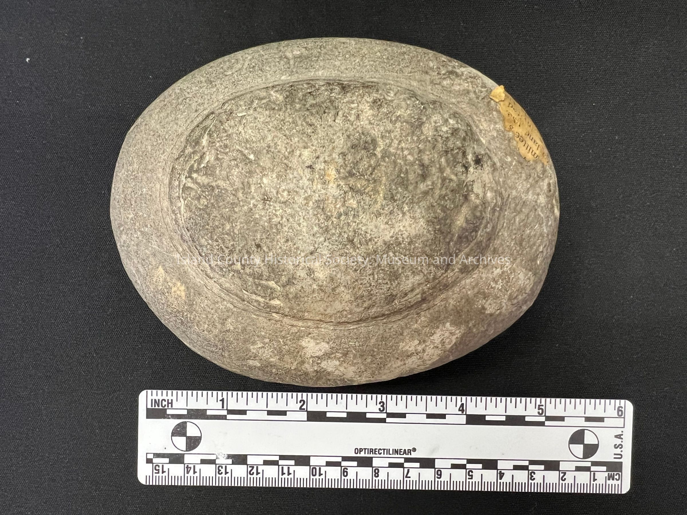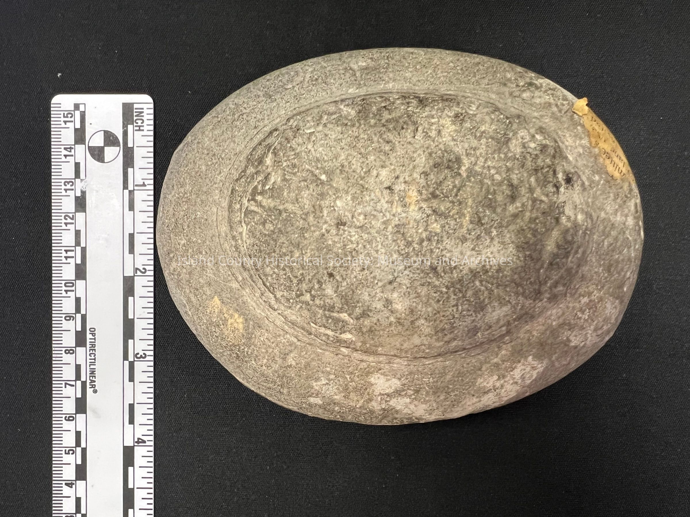 Natural mudstone concretion. Could have been used as a tool, but shows no sign of wear. Very common on the Olympic Peninsula and Whidbey Island. A small piece of old newspaper stuck to the concretion.Collection