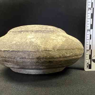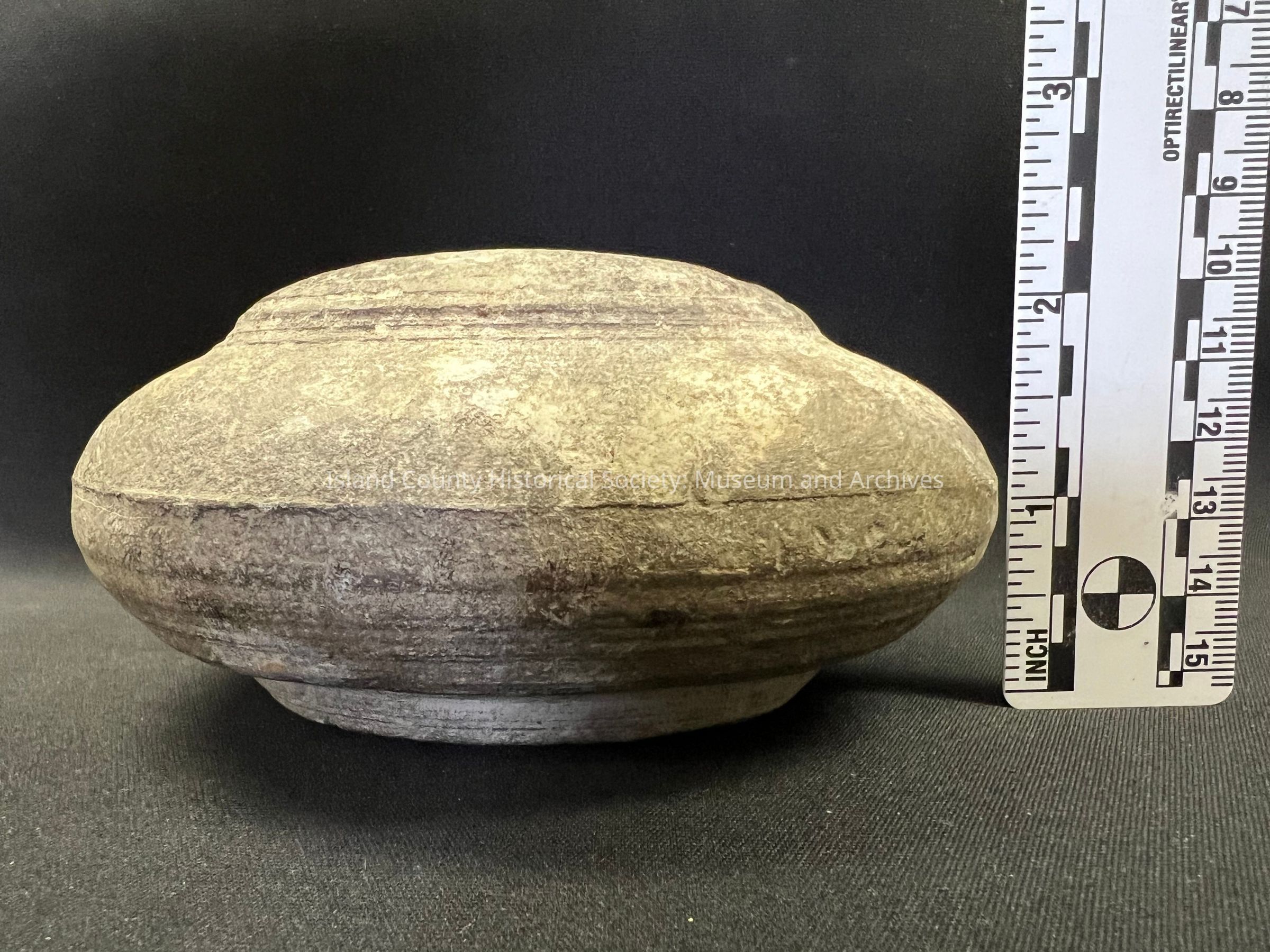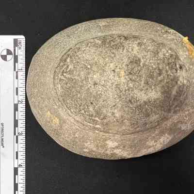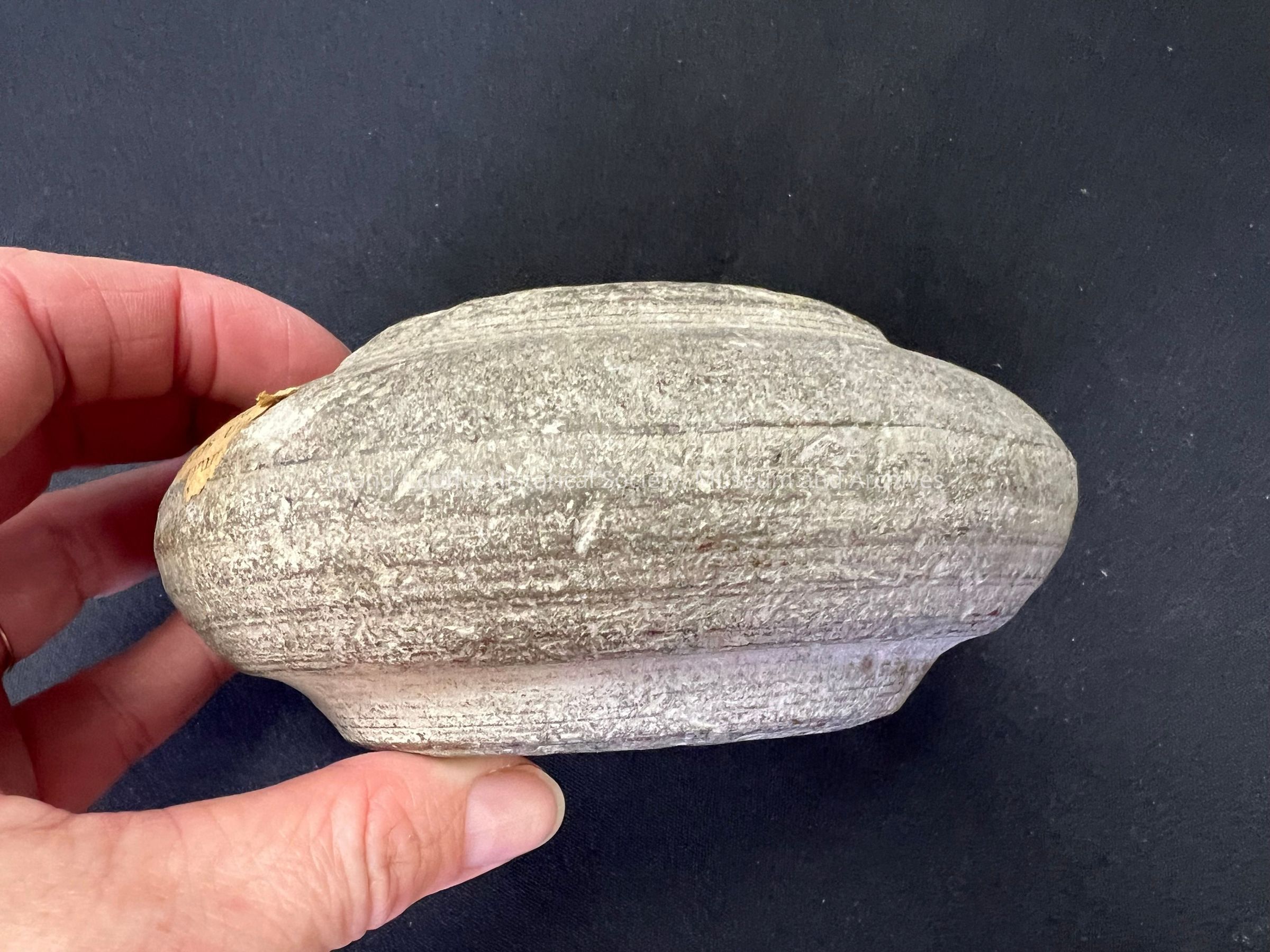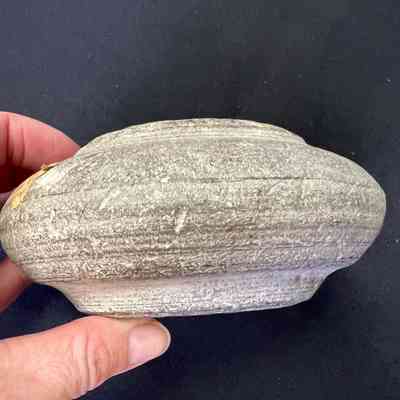 Natural mudstone concretion. Could have been used as a tool, but shows no sign of wear. Very common on the Olympic Peninsula and Whidbey Island. A small piece of old newspaper stuck to the concretion.Collection