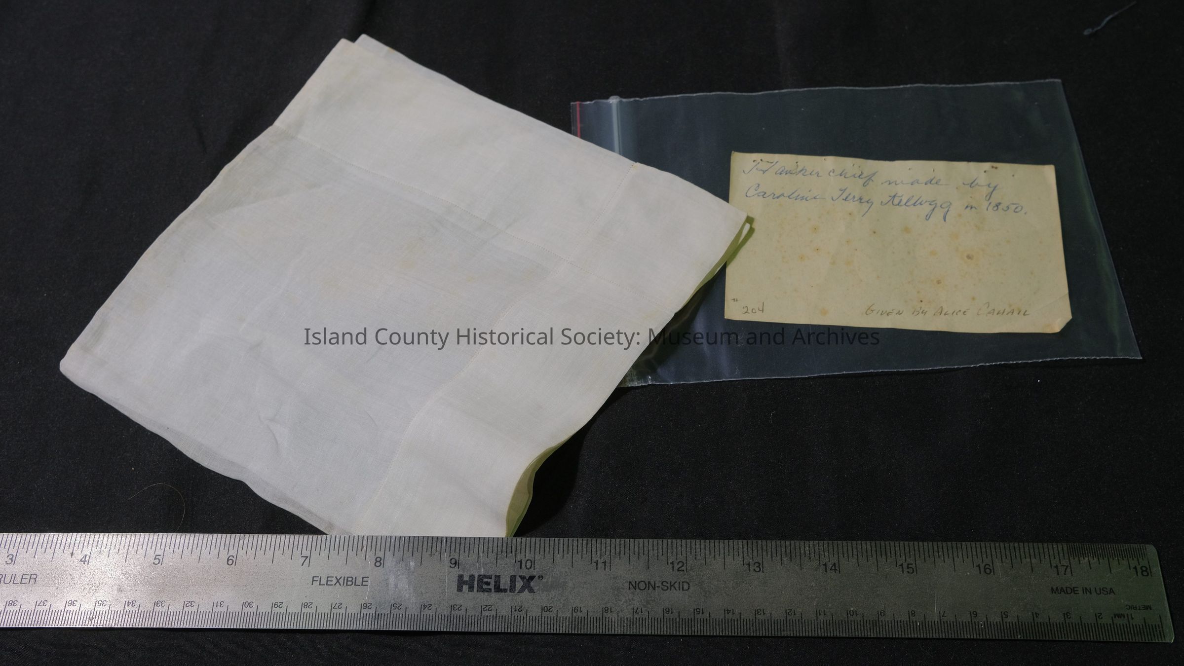 Made by Caroline Terry Kellogg in 1850. Handkerchief made by Caroline Terry Kellogg, 1850.