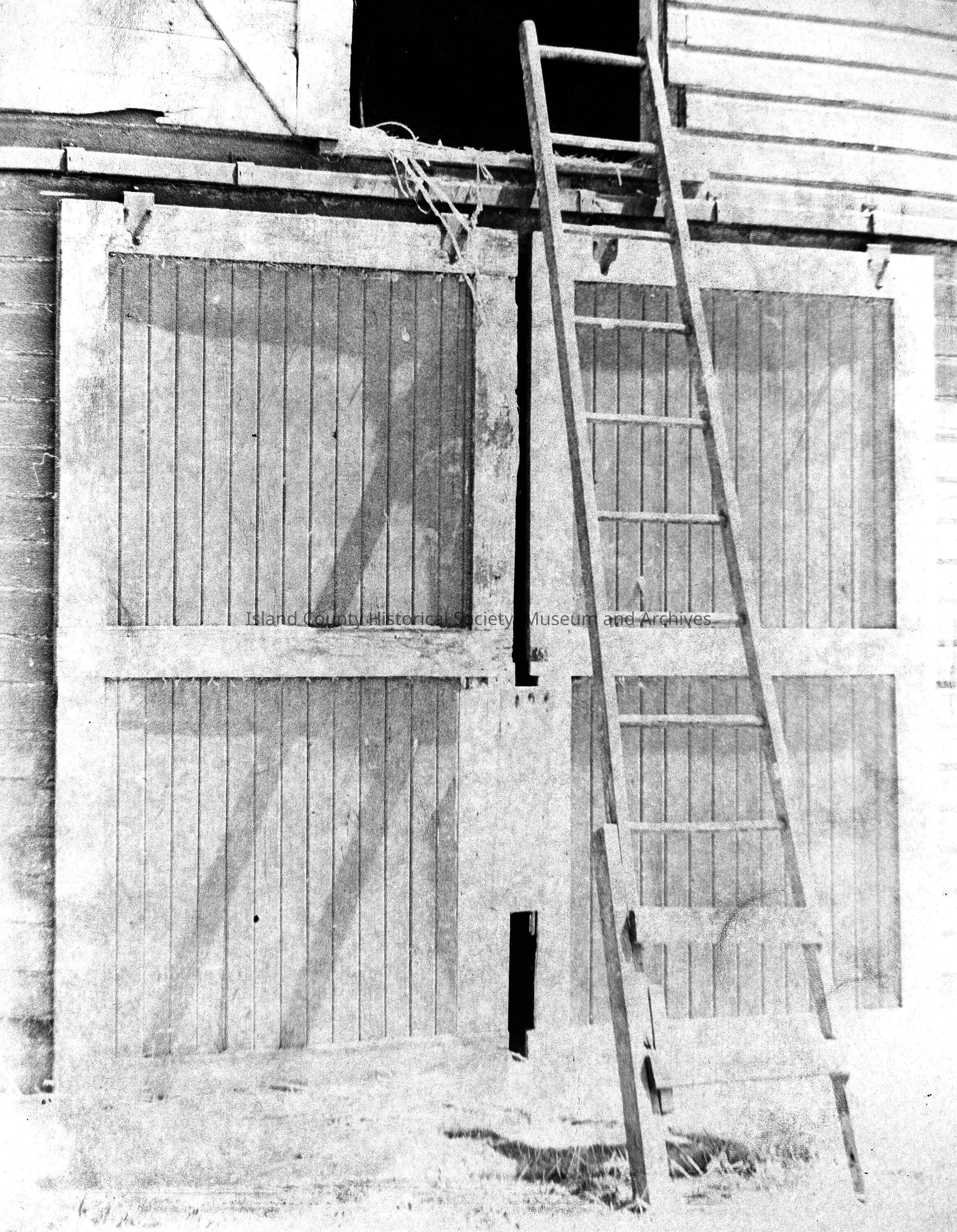 Barn door with ladder leading to hay loft