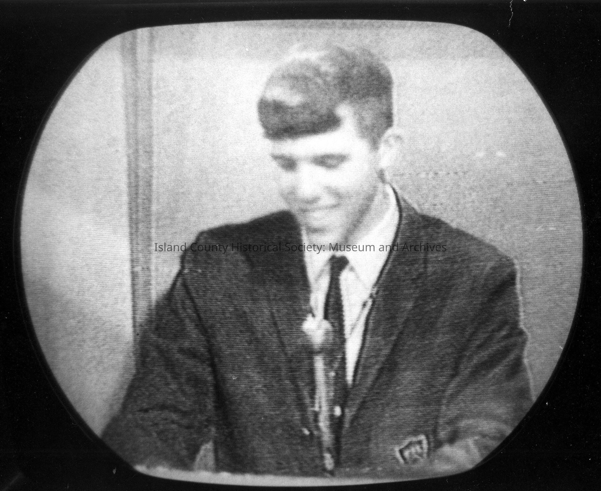 B&W photos of John Stone on the "Brain Trust" TV show. Phoeo taken directly from the TV