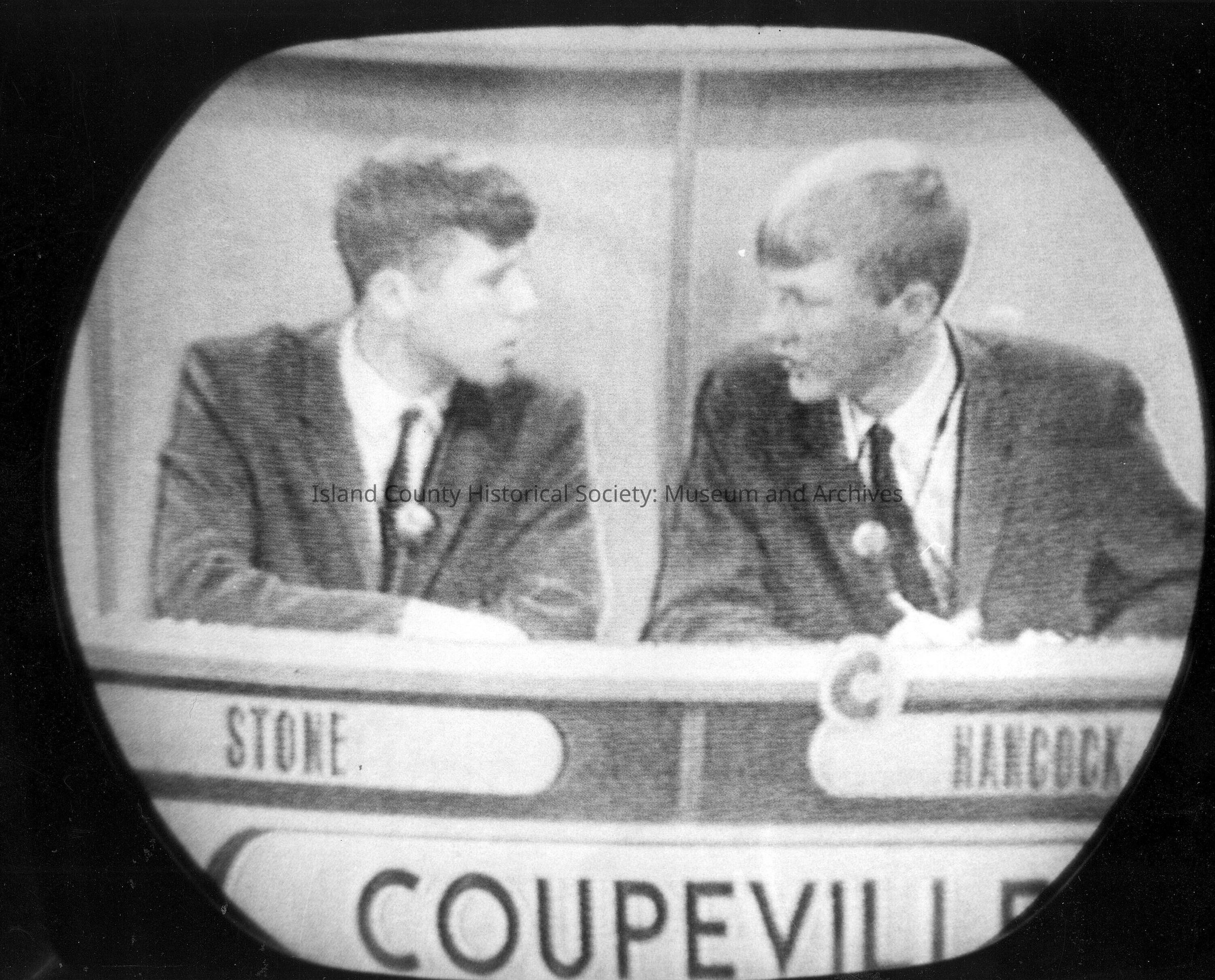 B&W photos of John Stone and Allan Hancock on the "Brain Trust" TV show. Photo taken directly from TVCollection