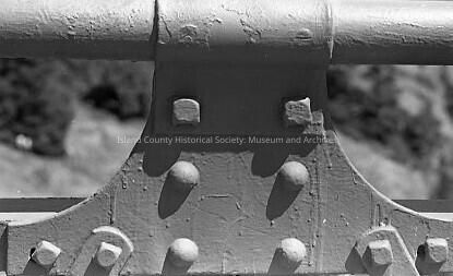 Black and white, photo of deception pass bridge railing, close up of bridge railing.Made/Created