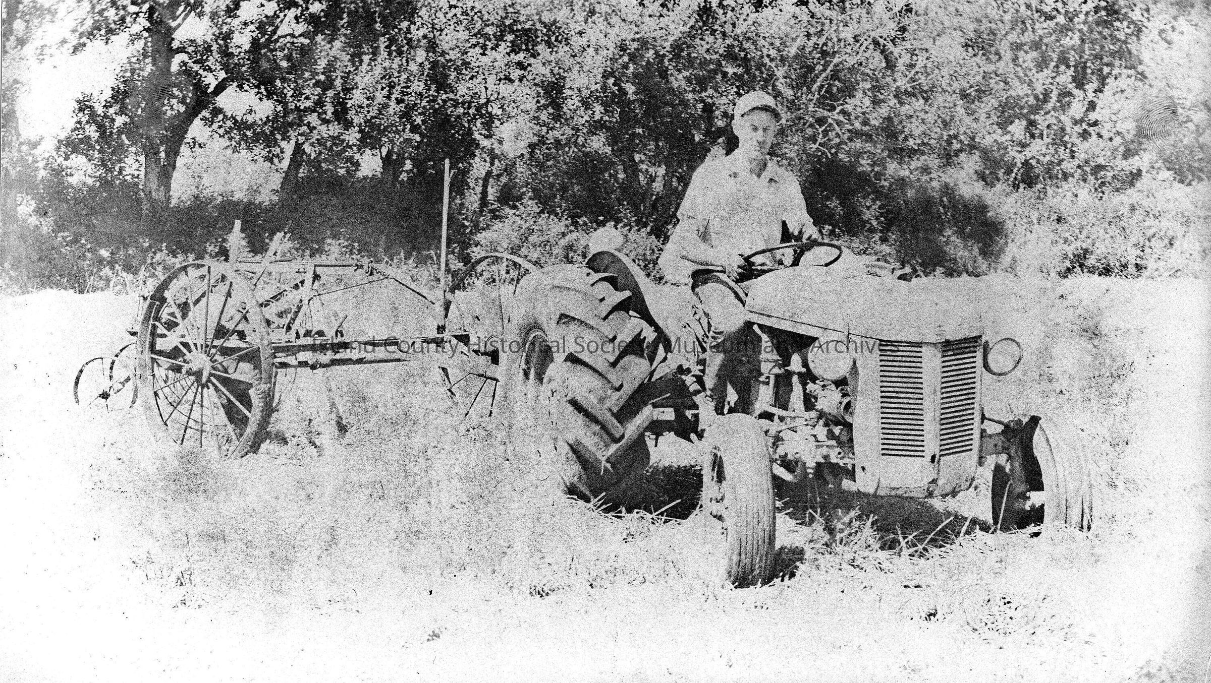 photo of Bob Muzzall on tractor pulling a hay rakeCollection