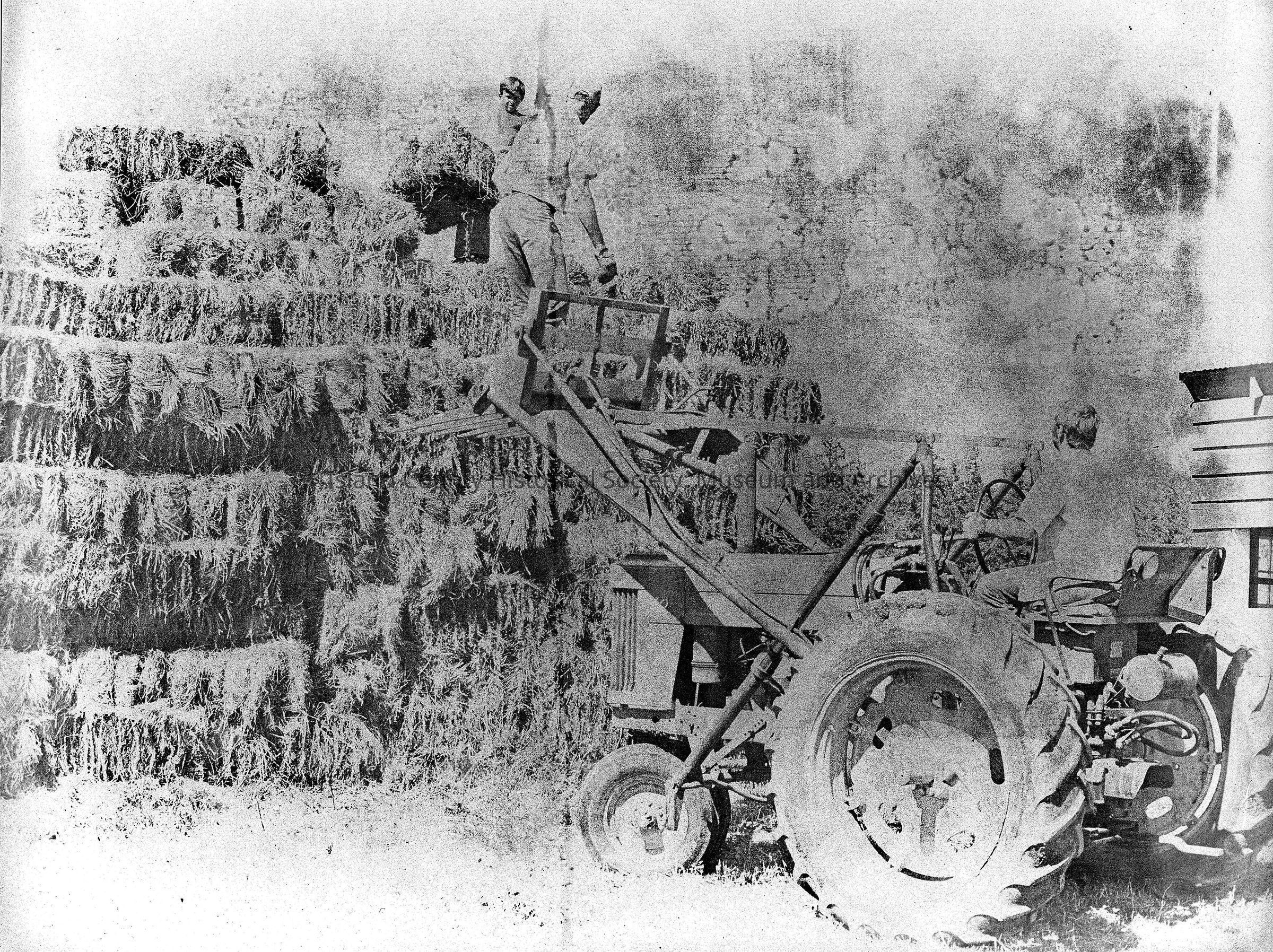 Stacking hay with tractor