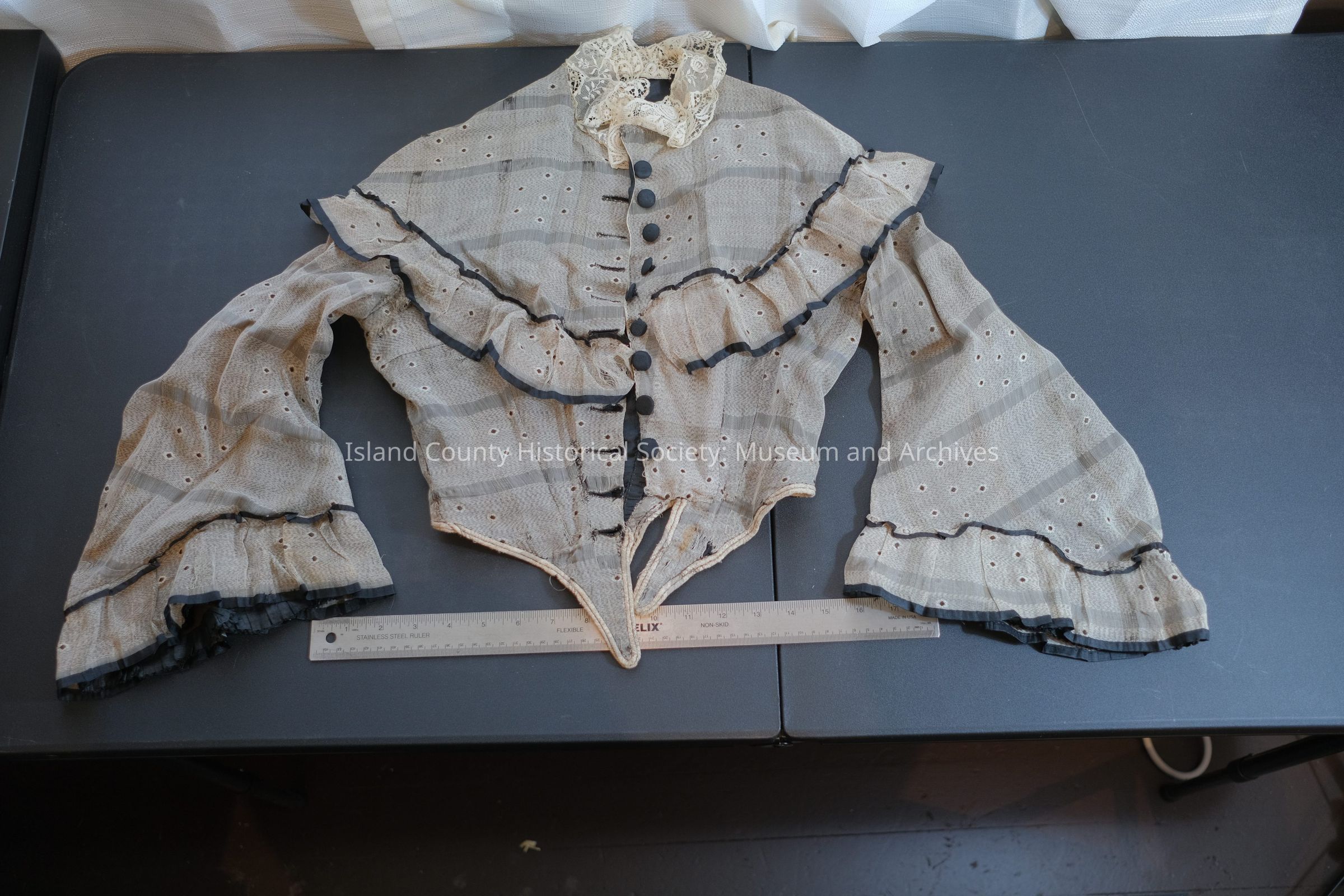 dress suit - gray silk print w/ flares sleeve, 3 pcs.