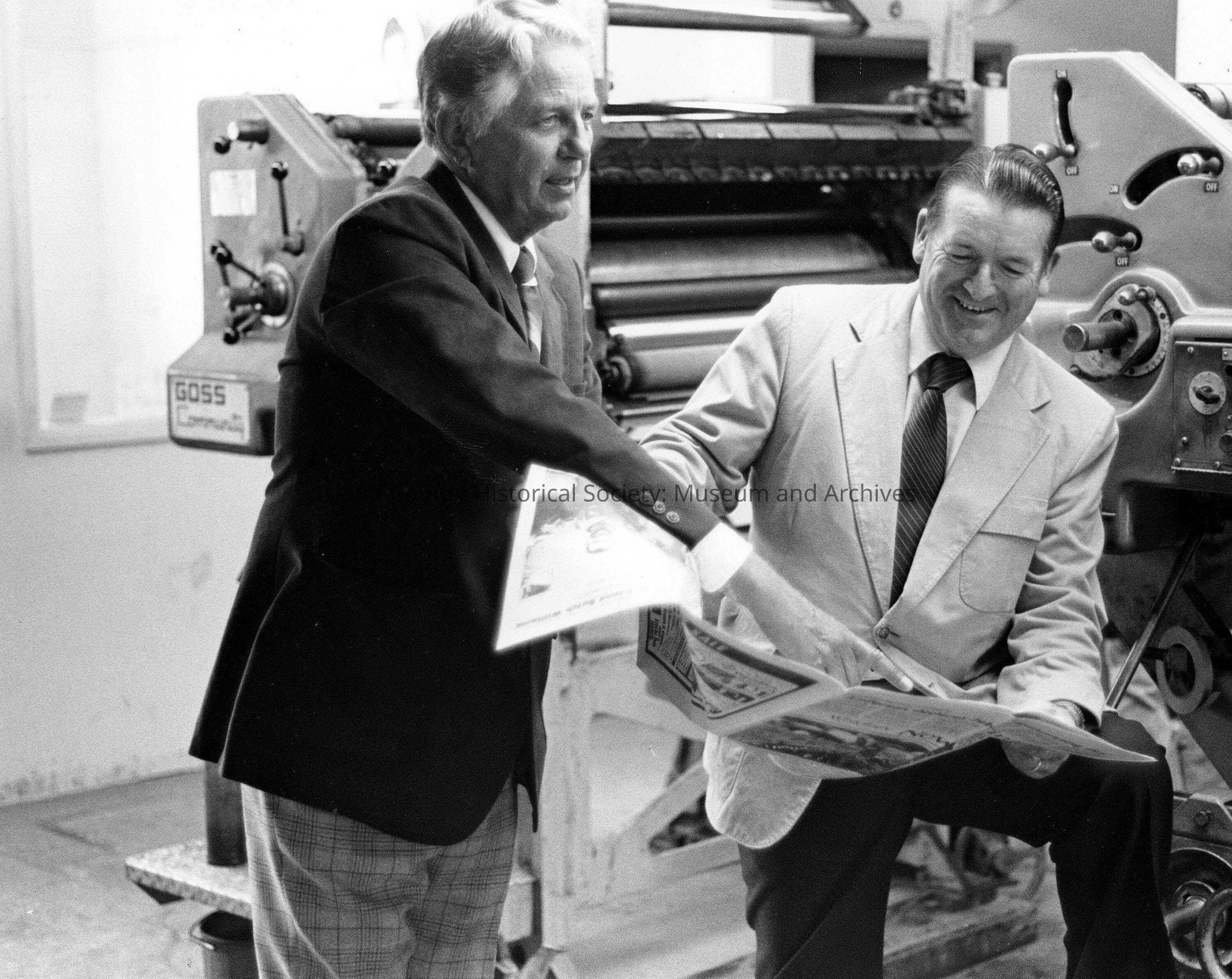 Wallie Funk and unknown man with printing press in the background
