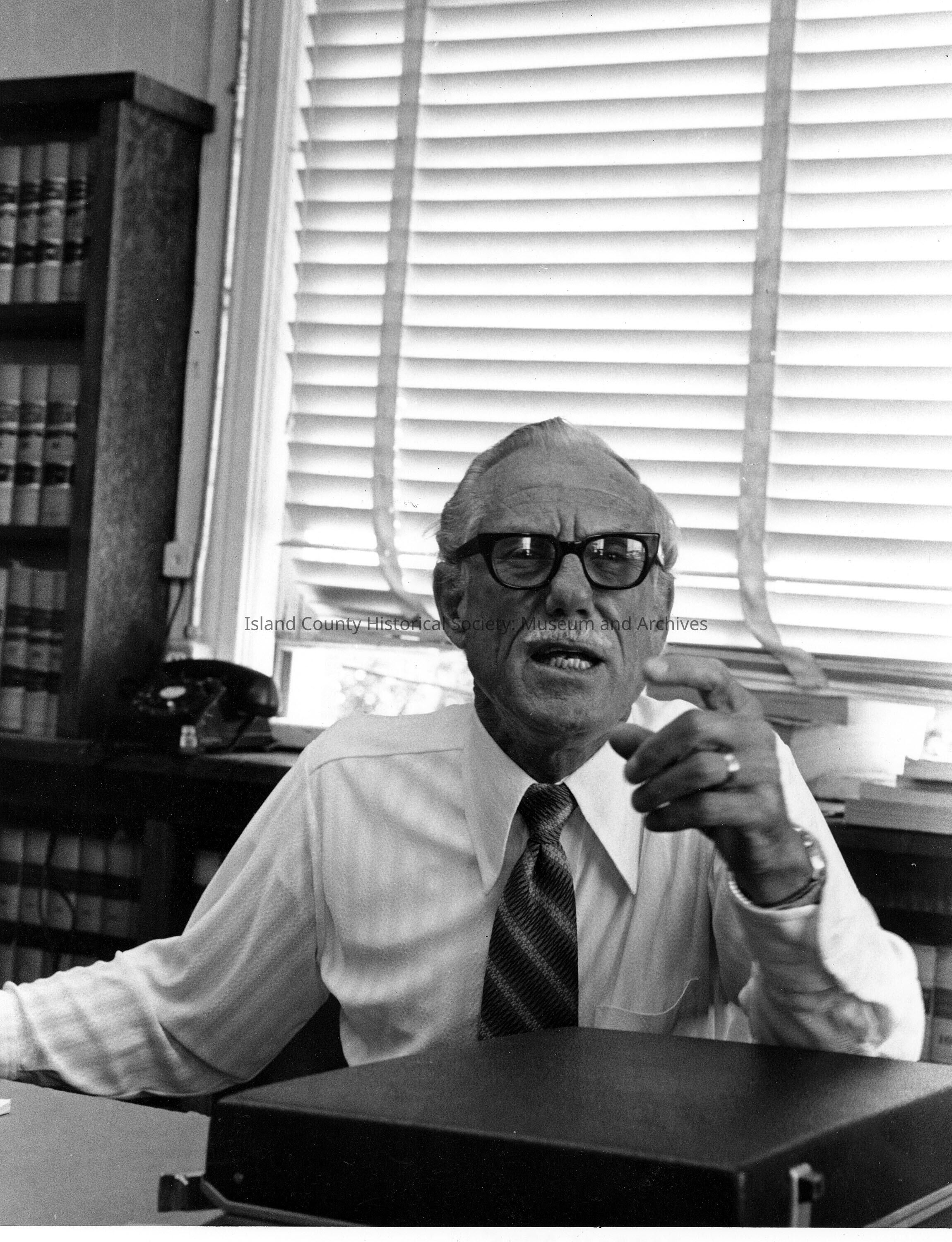b&w photo of Judge Howard Patrick at his desk in Friday Harbor