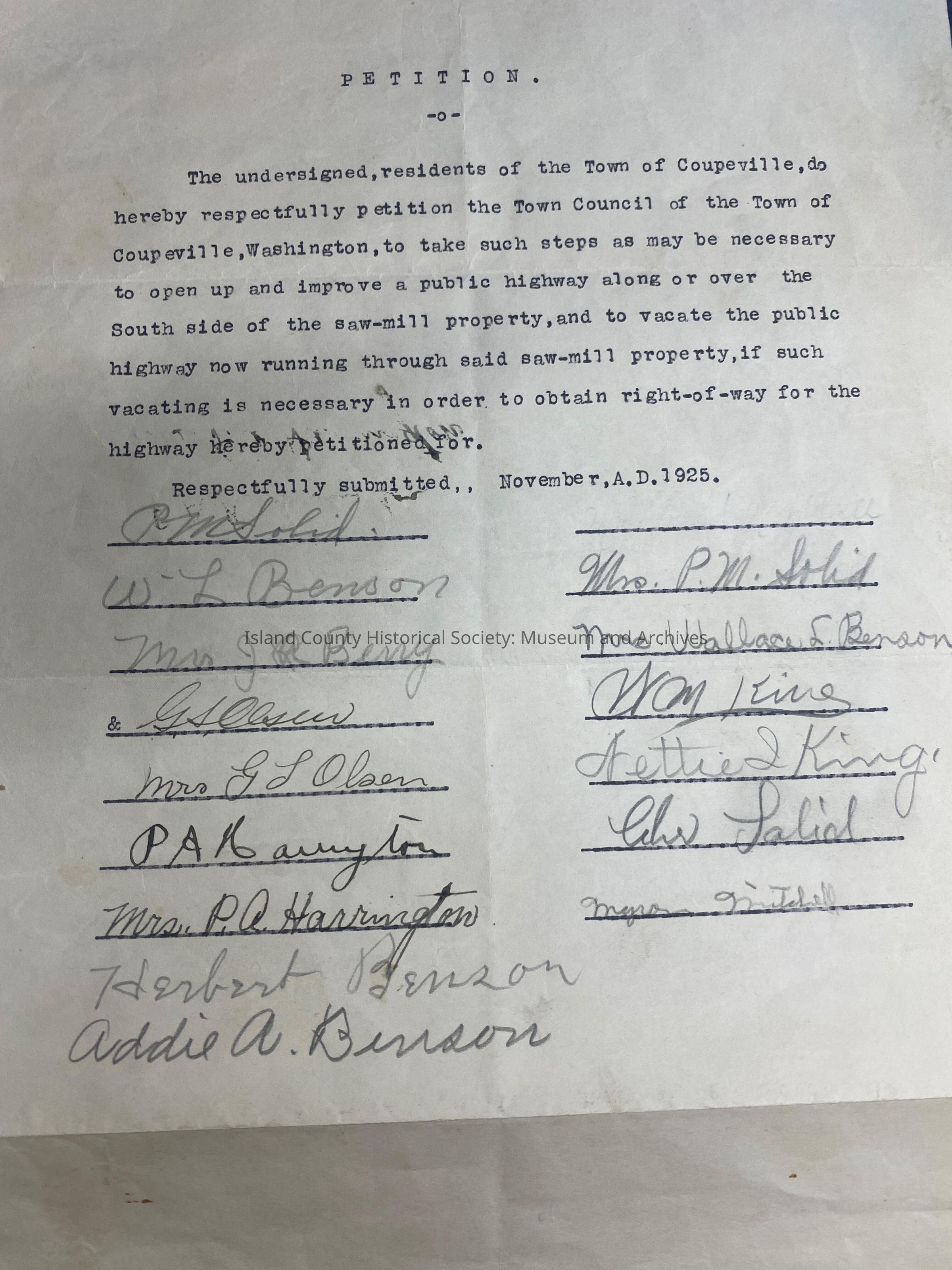 Petition to Town of Coupeville