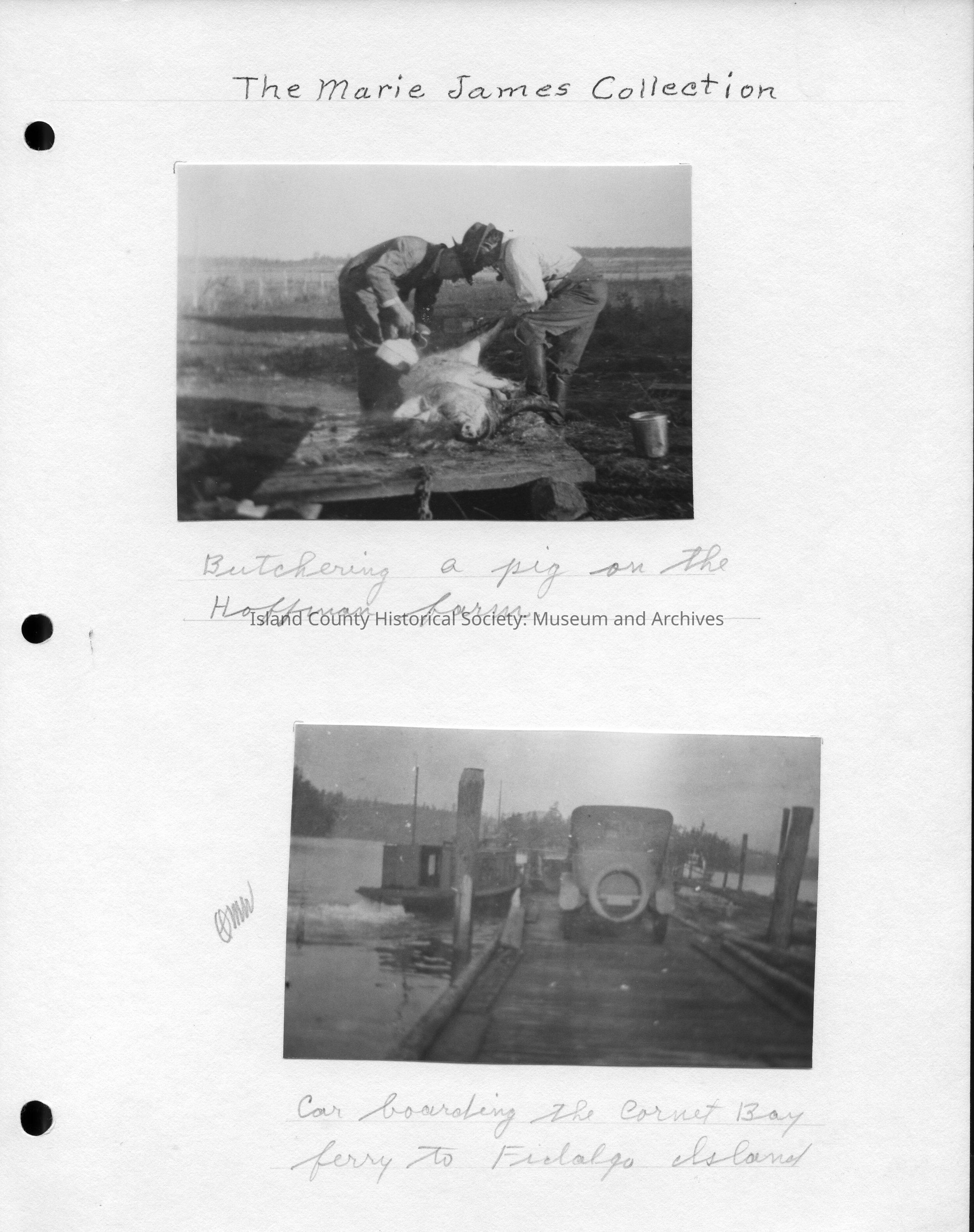 Top Photo - 4.5"W x 3.0"H - Photo of two men butchering a pig on the Hoffman farm.
