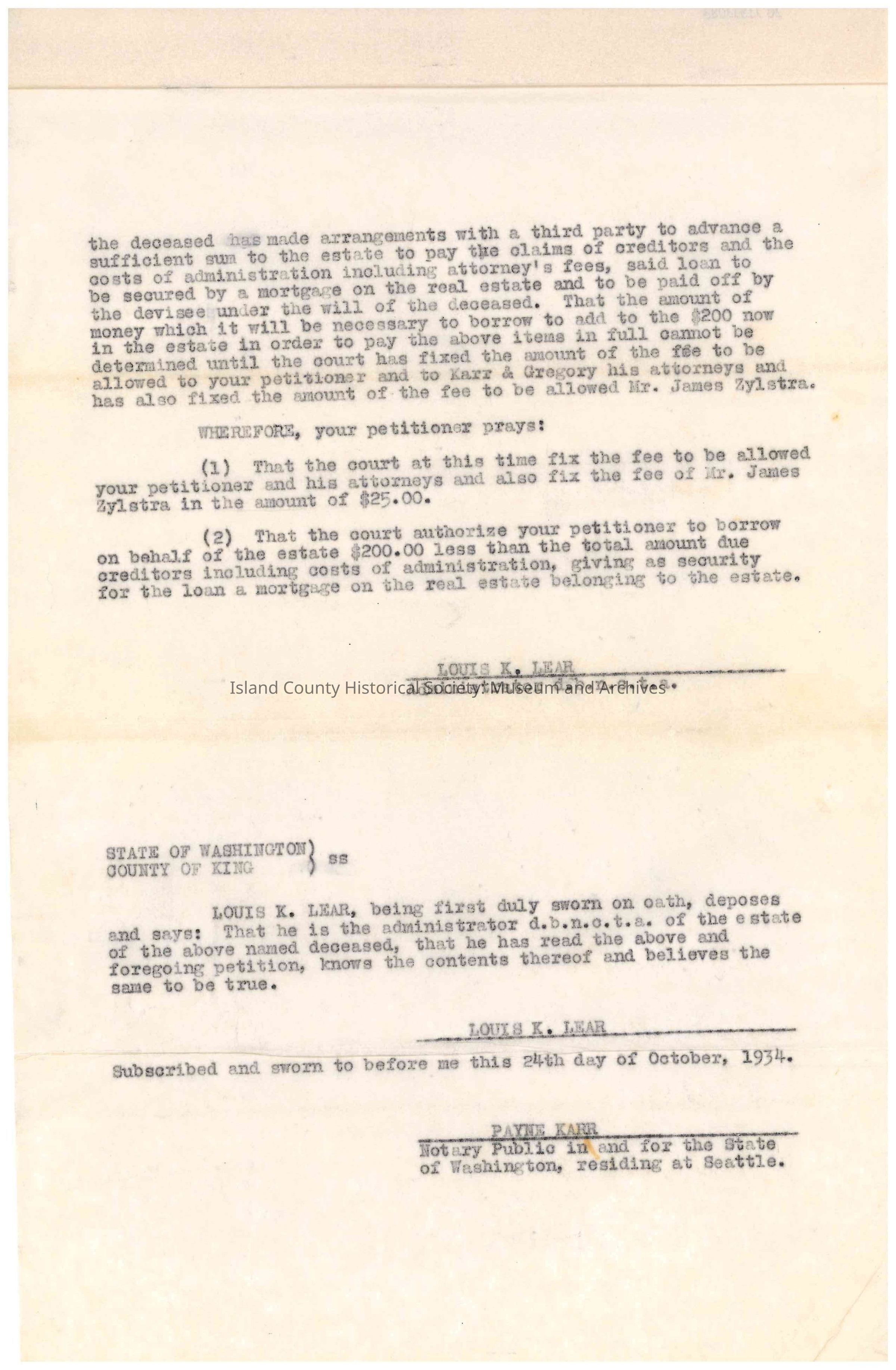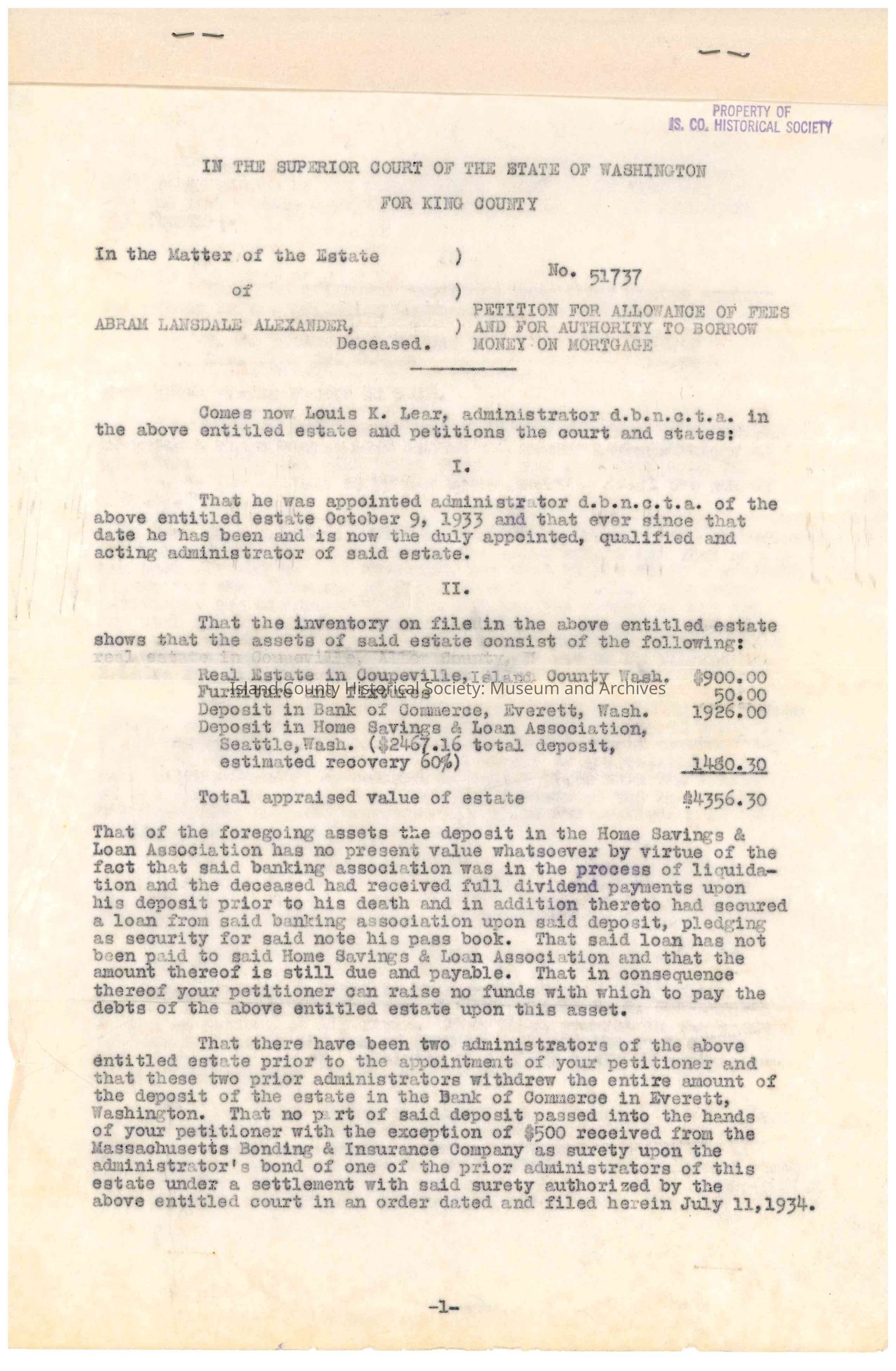 Petition for Allowance of Fees and for Authority to Borrow Money on MortgageEntry/Object ID