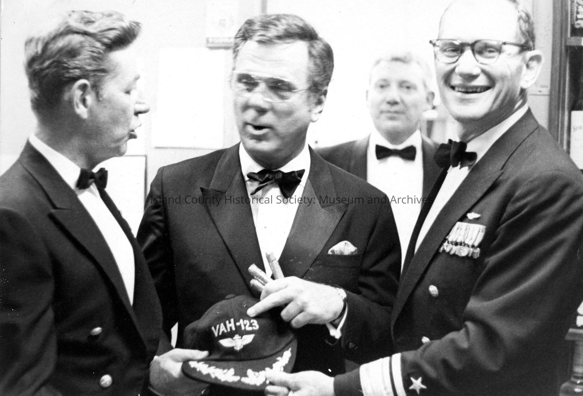 b&w photo of OHAC Navy League Meeting. Capt. of NAS Whidbey with actor Jackie Cooper and Adm. Carl Yates, Jr.