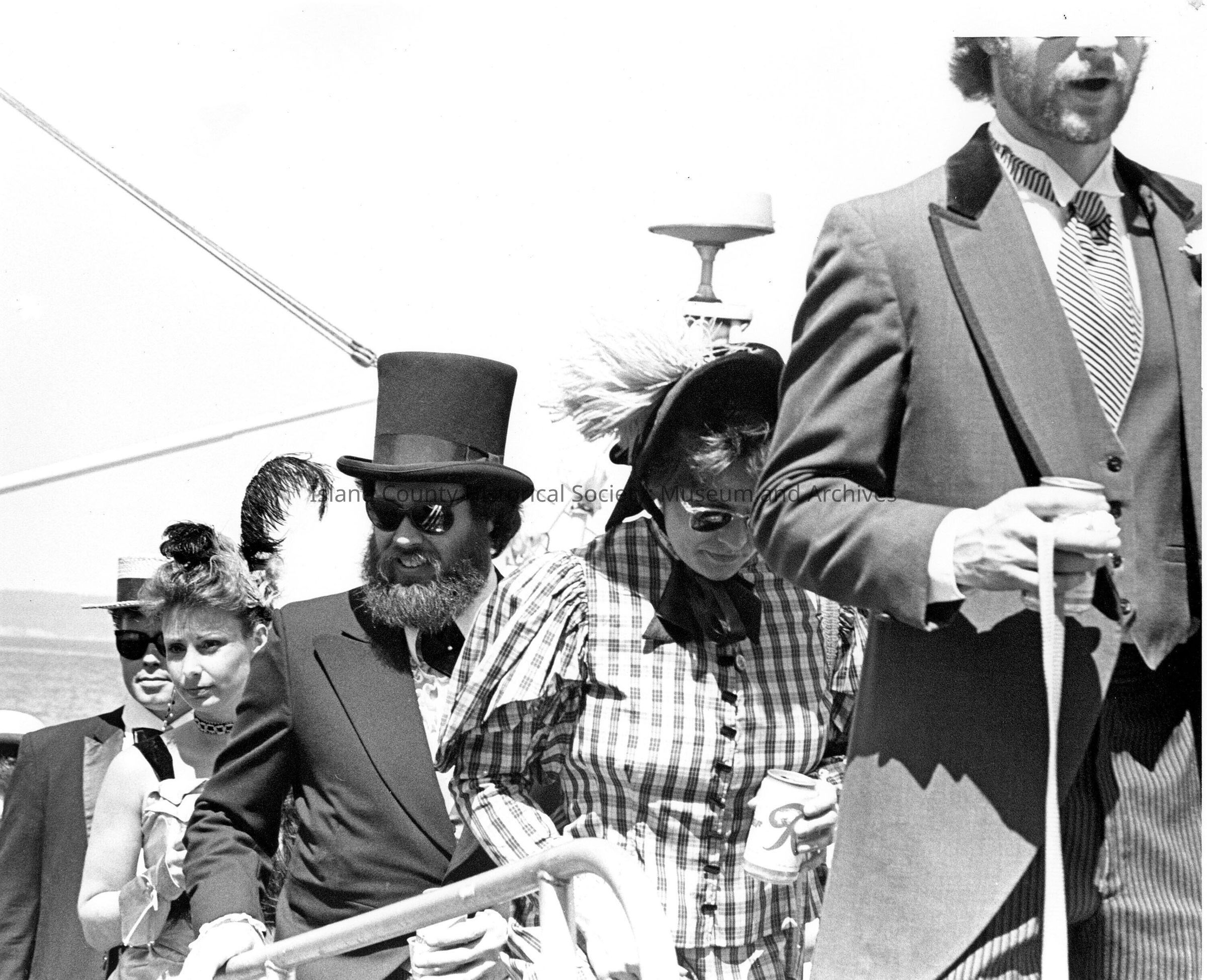 b&w photo of five people dressed in old fashioned way