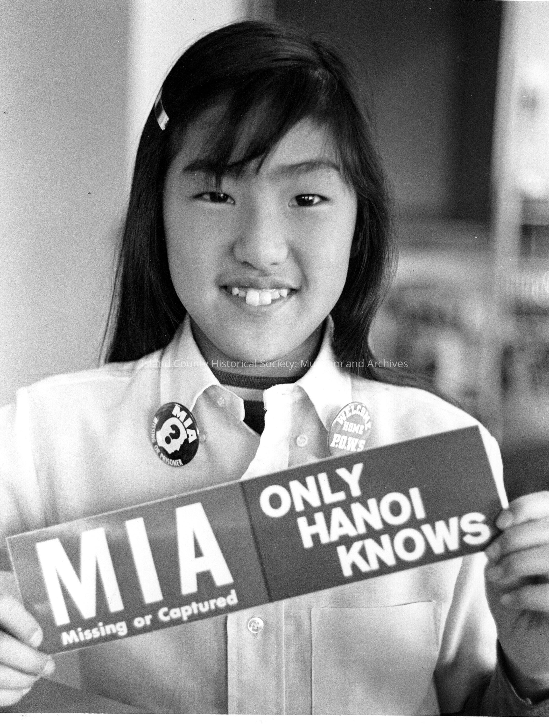 Asian girl holding MIA sign