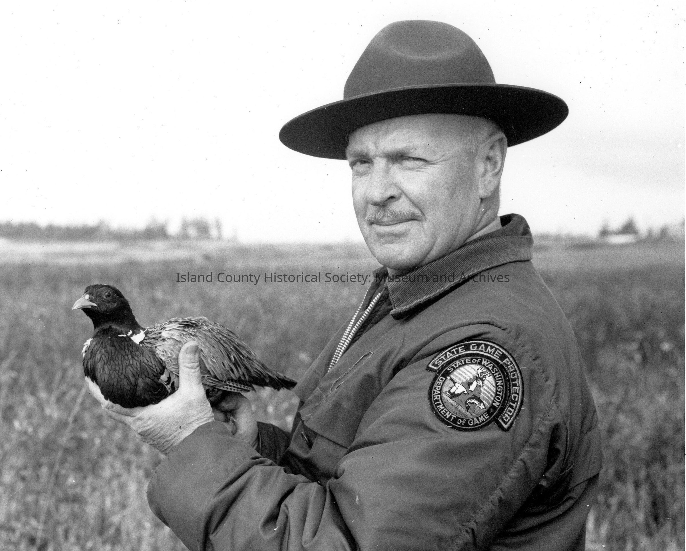 State Game Warden holding a pheasant