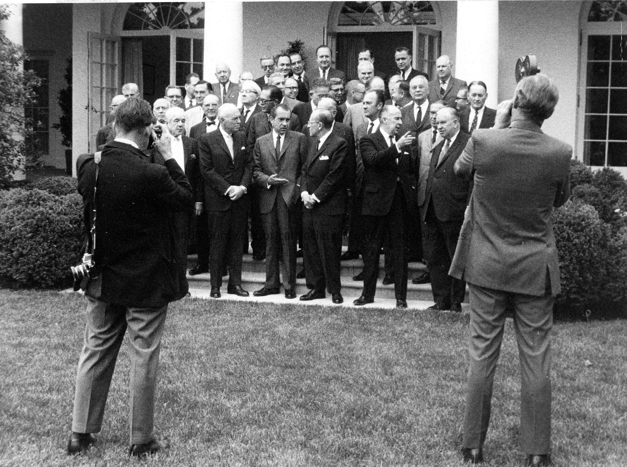 President Richard Nixon with crowd --two men taking photos of them