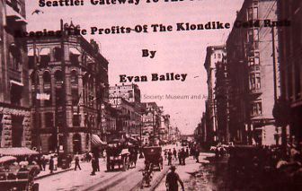 Photograph of the introduction to a presentation (likely a slideshow) by Evan Bailey, titled "Seattle: Gateway to The Yukon Frontier, Reaping the Profits of the Klondike Gold Rush".Relationships