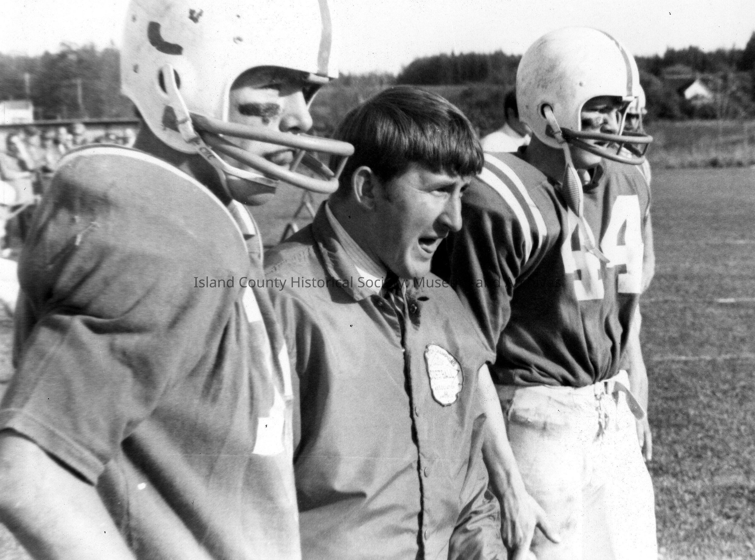 Cory Cross in football uniform with Coach Frank Steele next to him.