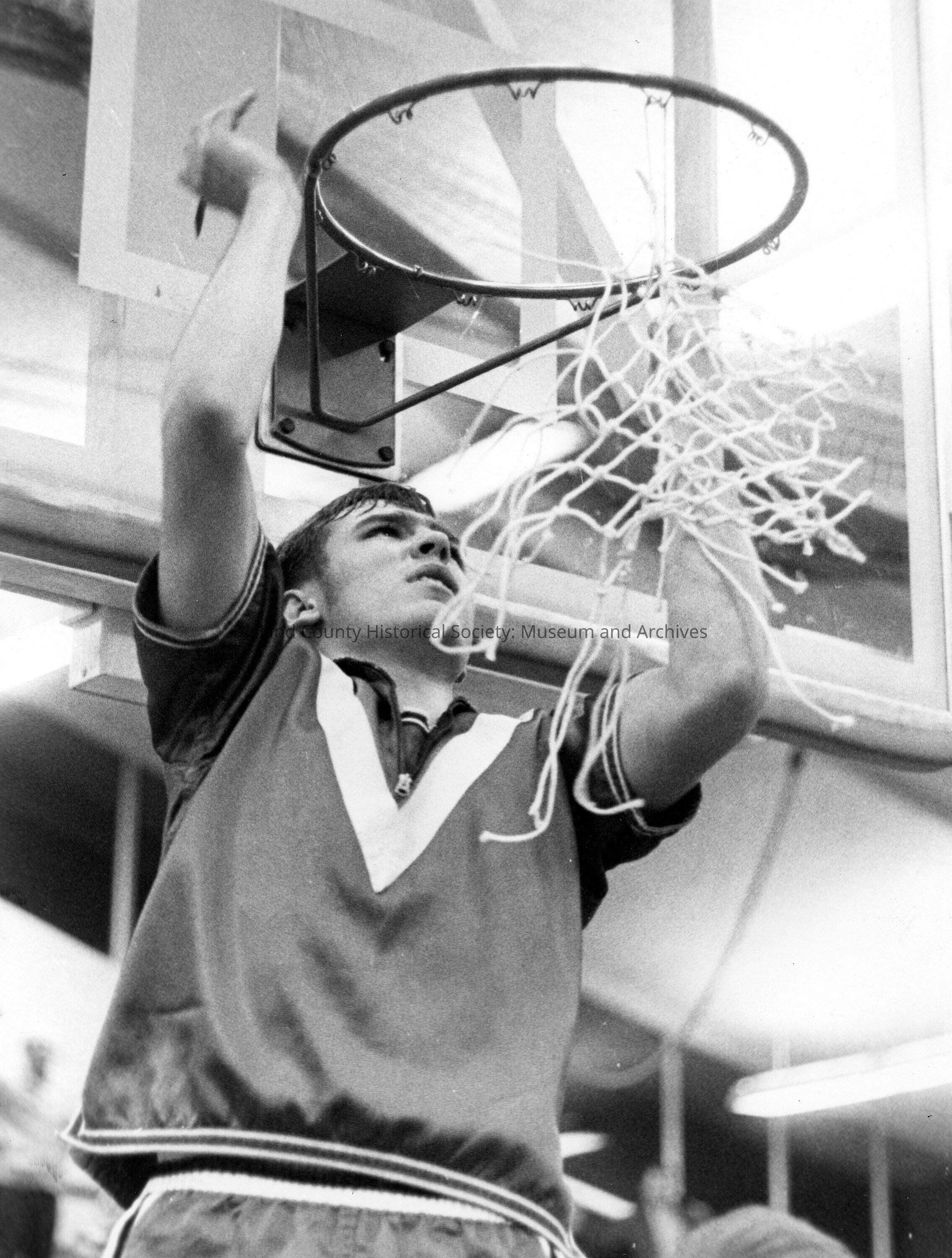 Basketball player removing net from hoop