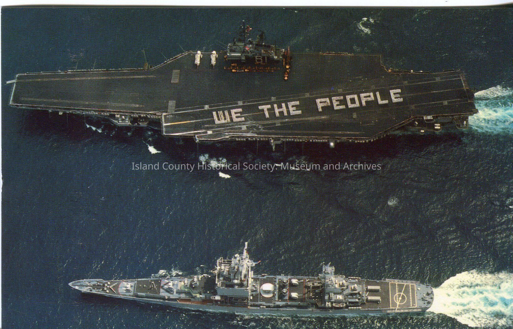 A large group of color postcards from the 1940s to 1980s with Naval vessels of all sorts, merchant ships, and Coast Guard ships, a fighter airplane, and one of women learning to perform semaphore. There are also several photos and cards in this series related to Island County and are individually entered in PP5.