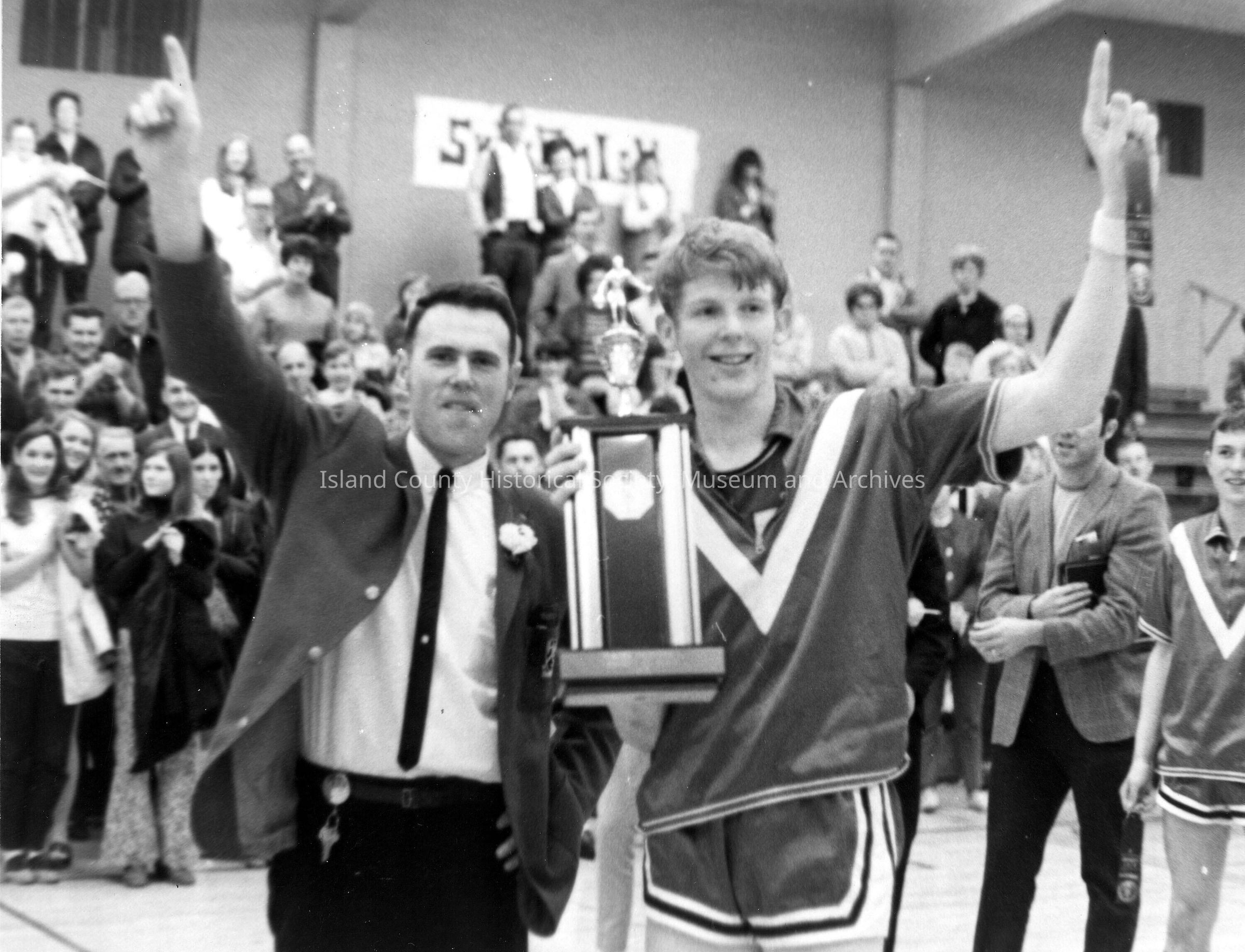 Coach Bob Barker and Jeff Stone with trophy