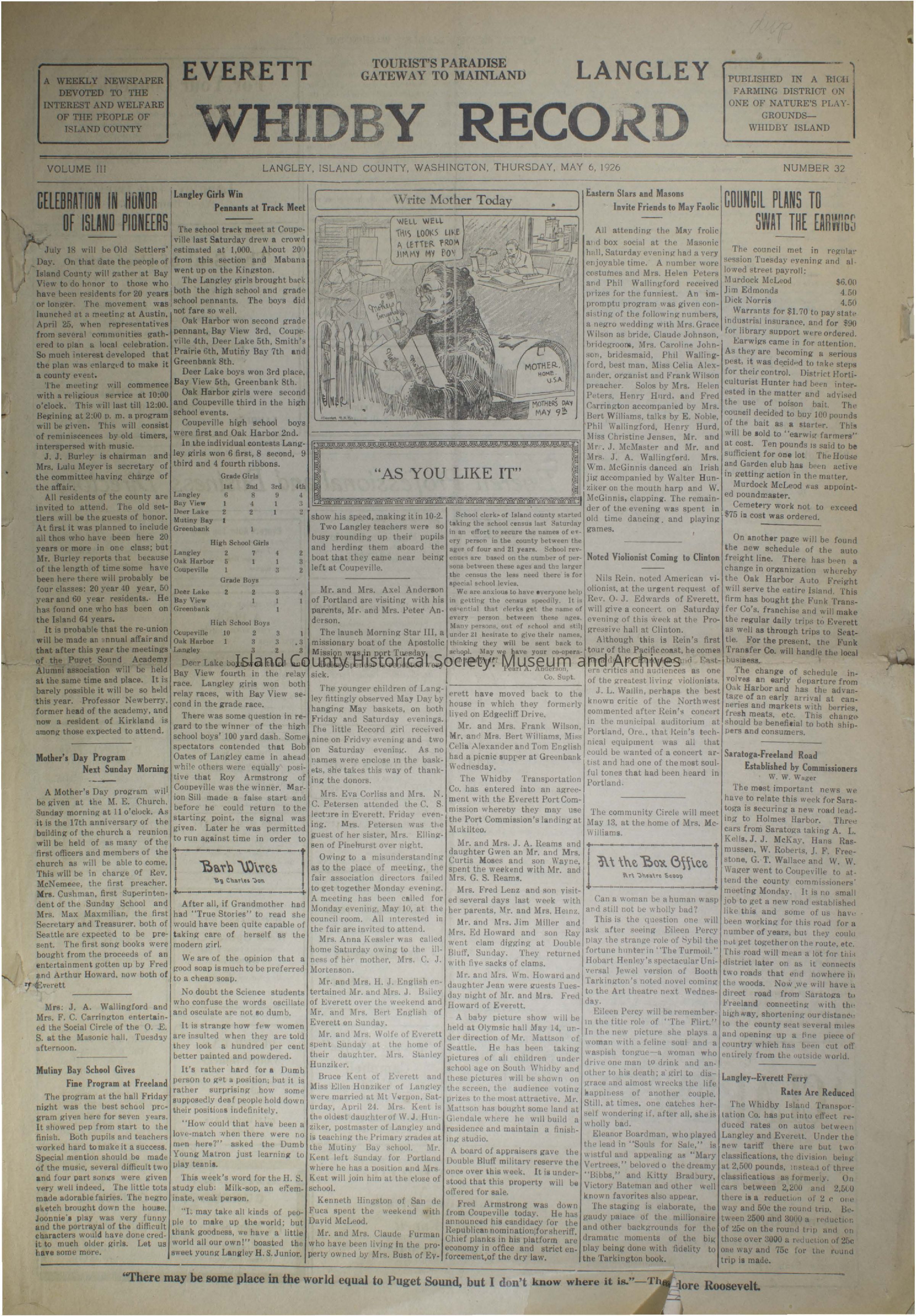 Whidbey Record - May 6, 1926