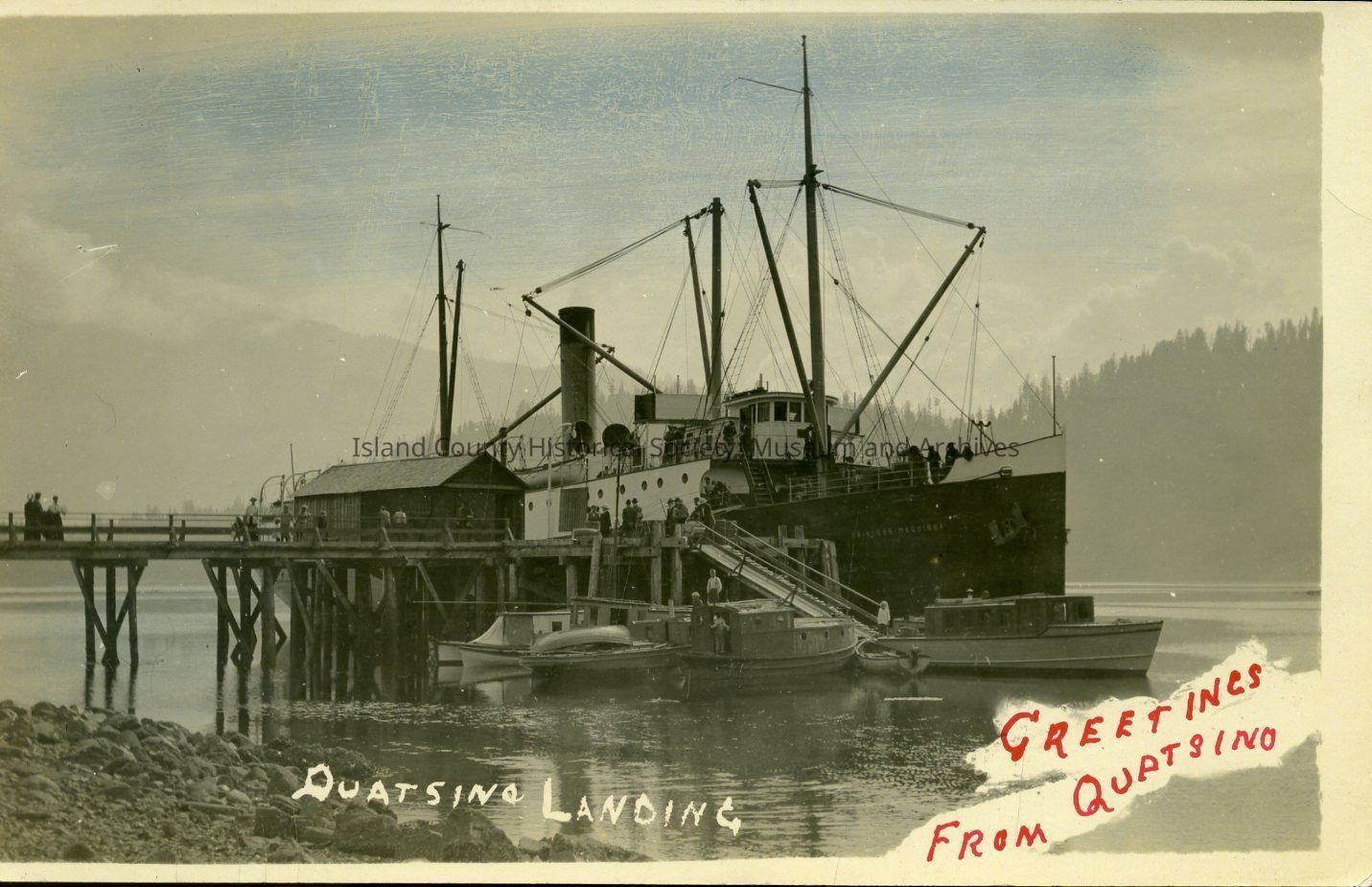 Postcard depicting Quatsino Landing near Coal Harbor, BC. Possibly c. 1900-1925.