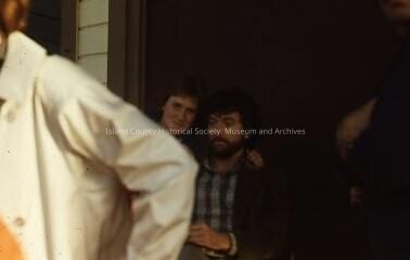 Downtown Coupeville. Filming of Cry for the Strangers, 1982. Star Patrick Duffy and costar visible in front of store on Front Street.