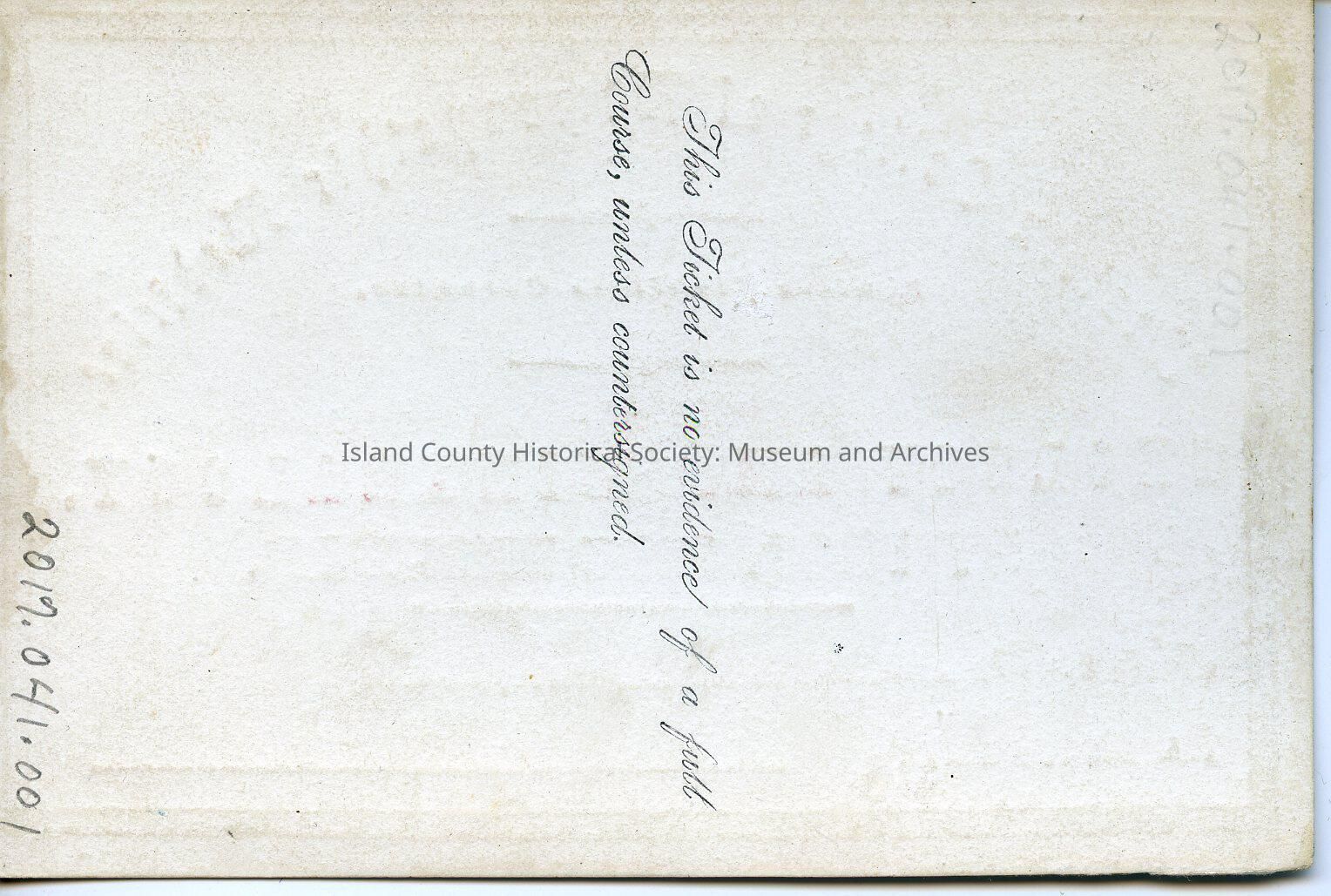 On the back is "This ticket is no evidence of a full Course unless countersigned".