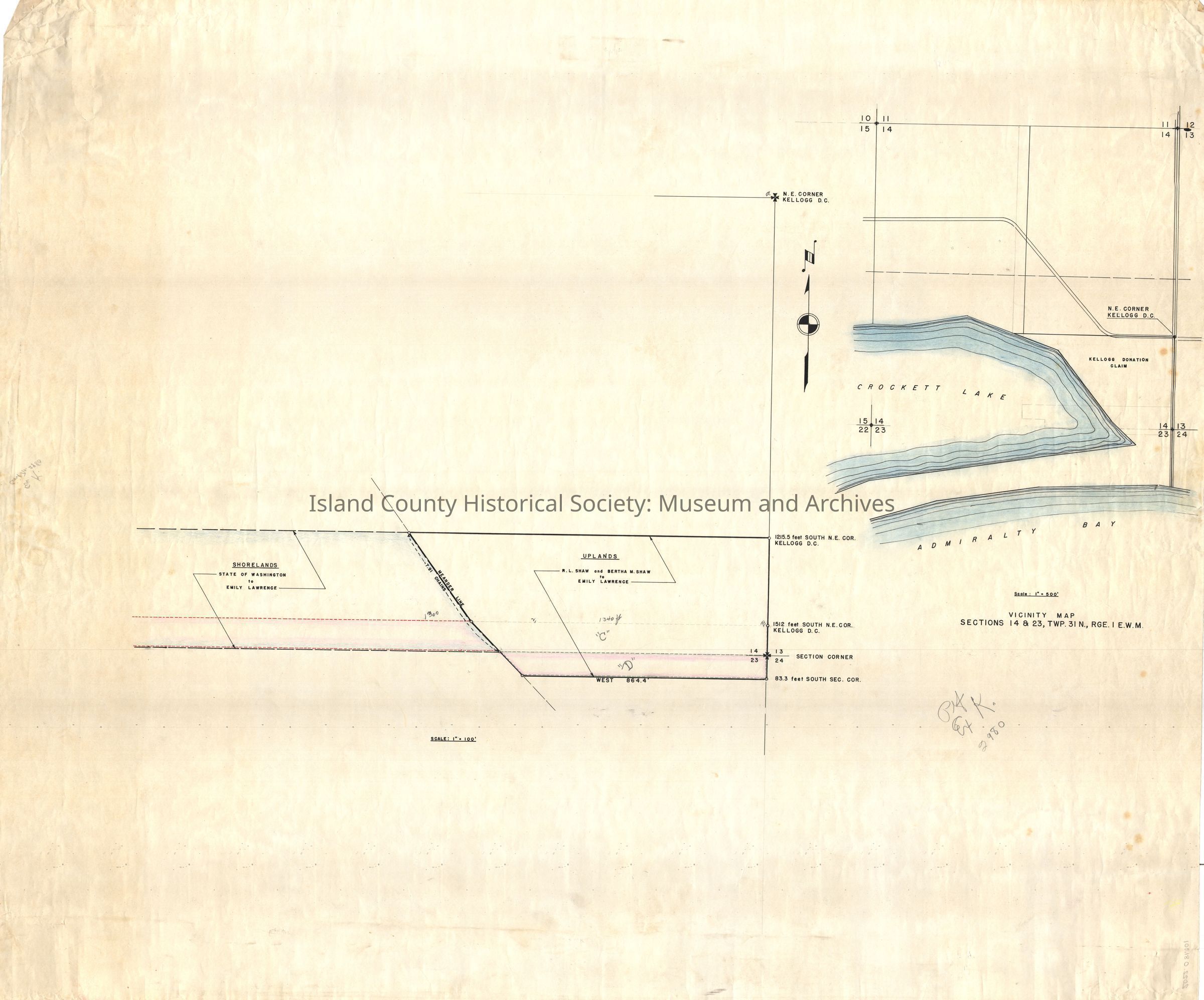 large map showing Kellogg Land Claim near Crockett Lake