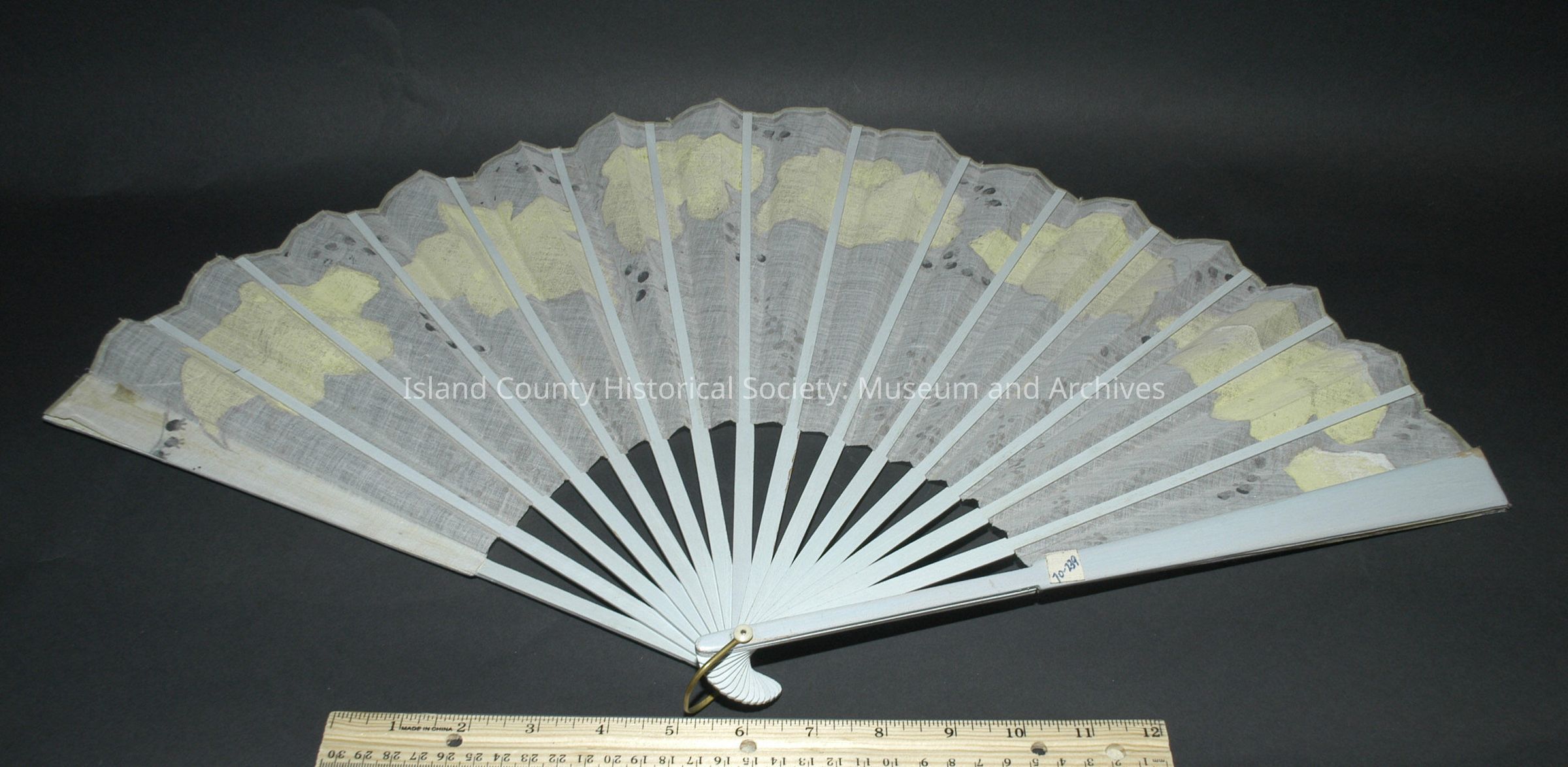 Painted cambric and wood fan.