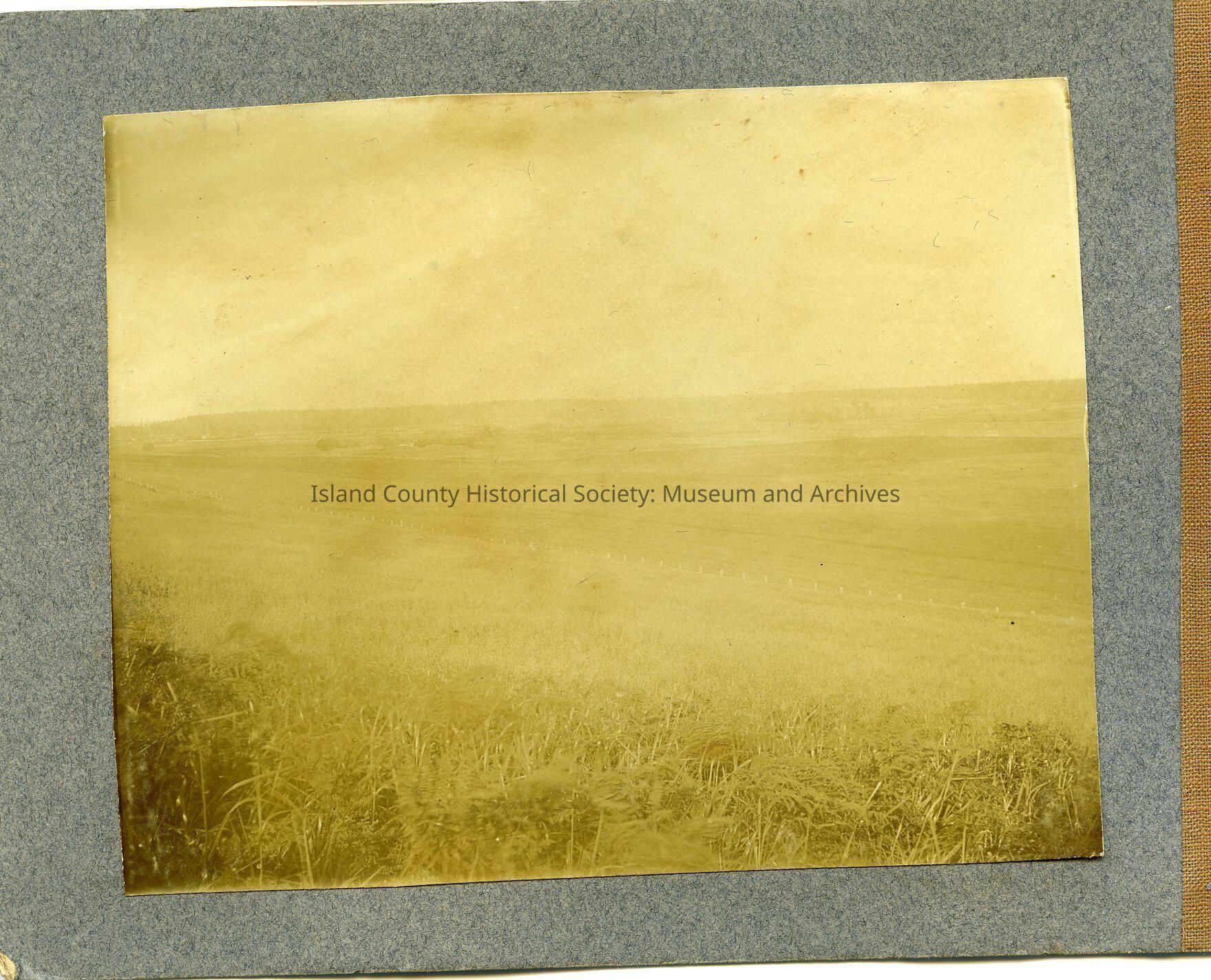 A picture of a grassy field, not seen well. Part of a book of photographs collected by Lem Wanamaker.