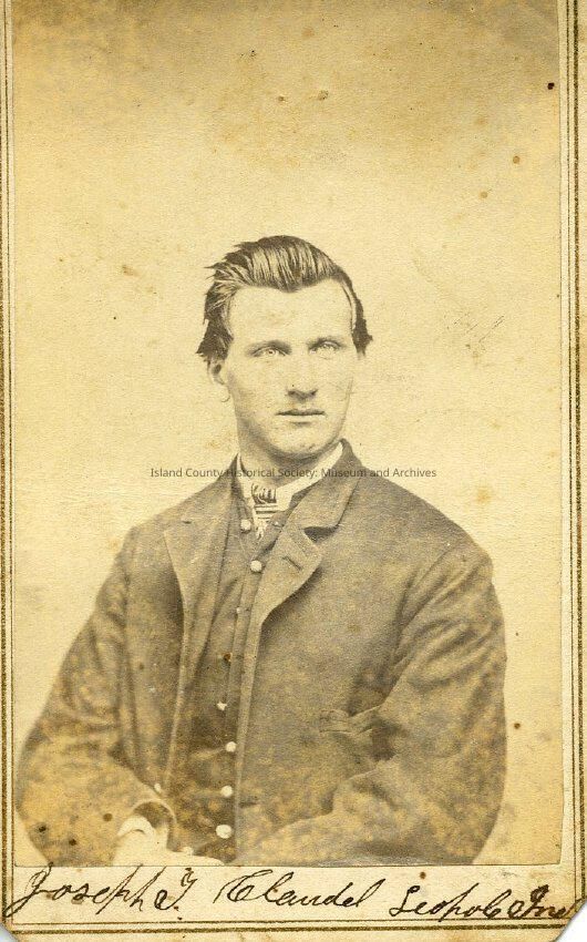 A portrait of Joseph G. Claudell, Leopole, Ind. On the back: J G Claudell Co G 81" Ind Inft" Found online: Joseph T. Clodel (of Leopold), Co G, 81st Ind Inf, mustered out as absent sickMade/Created