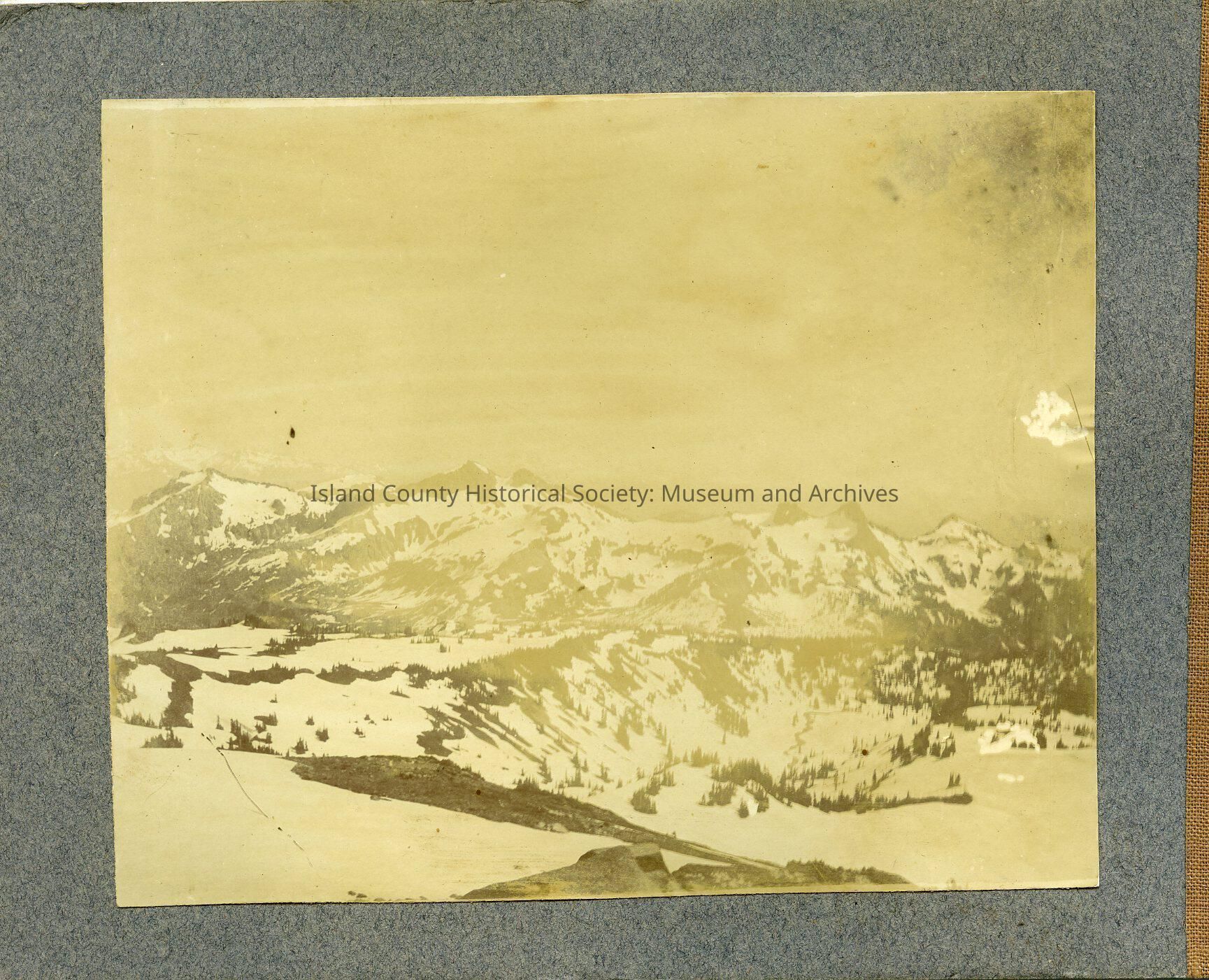 Photo shows a snow covered mountain range. Image was found in book of photographs collected by Lem Wanamaker and given by Herman Wanamaker.