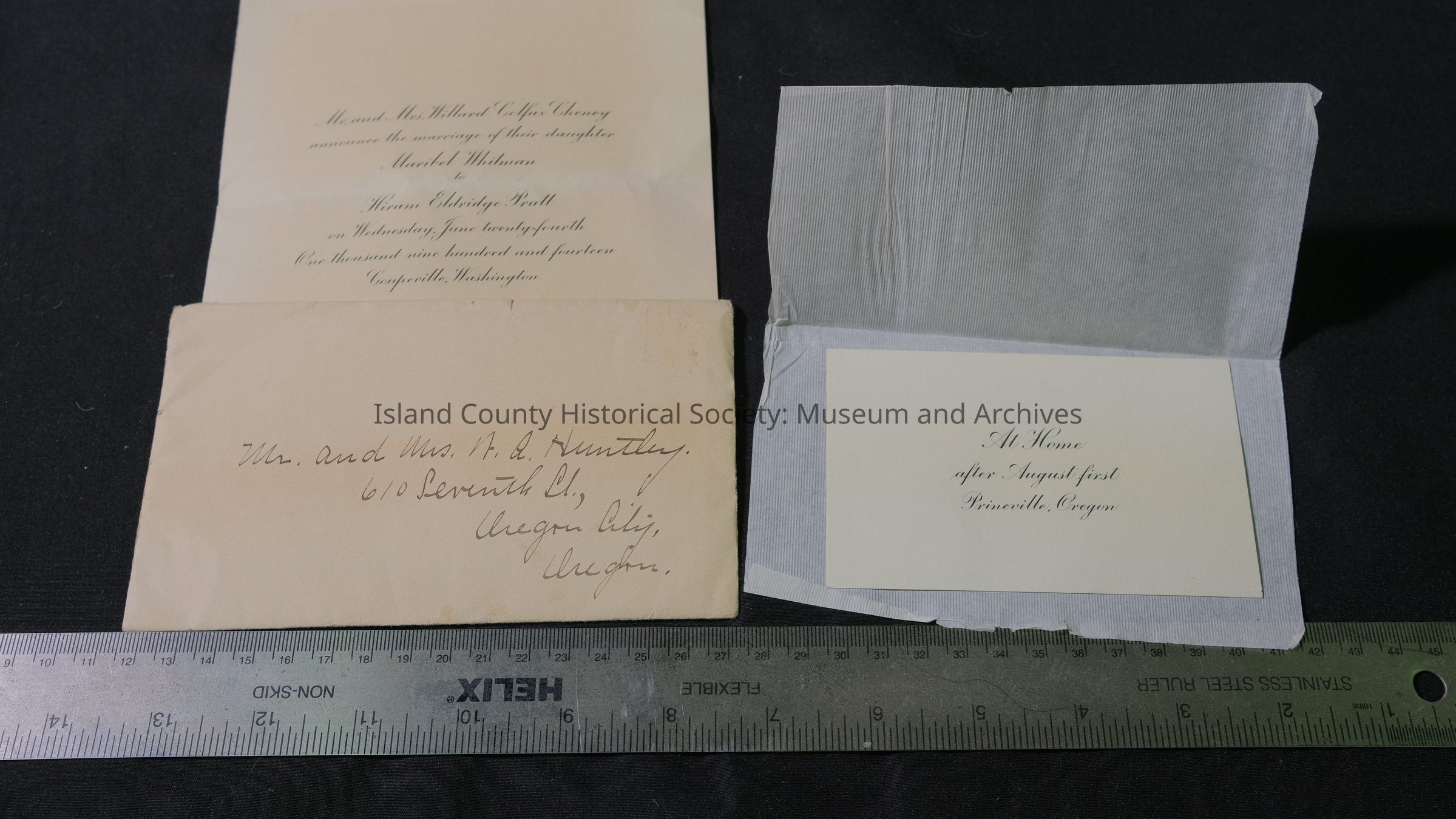 A. Wedding Announcement and Invitation for Maribel Whitman B. July 4, 1955 - 51st Anniversary (2002-28-30) C. Notecard attached to sashes (2002-28-28)