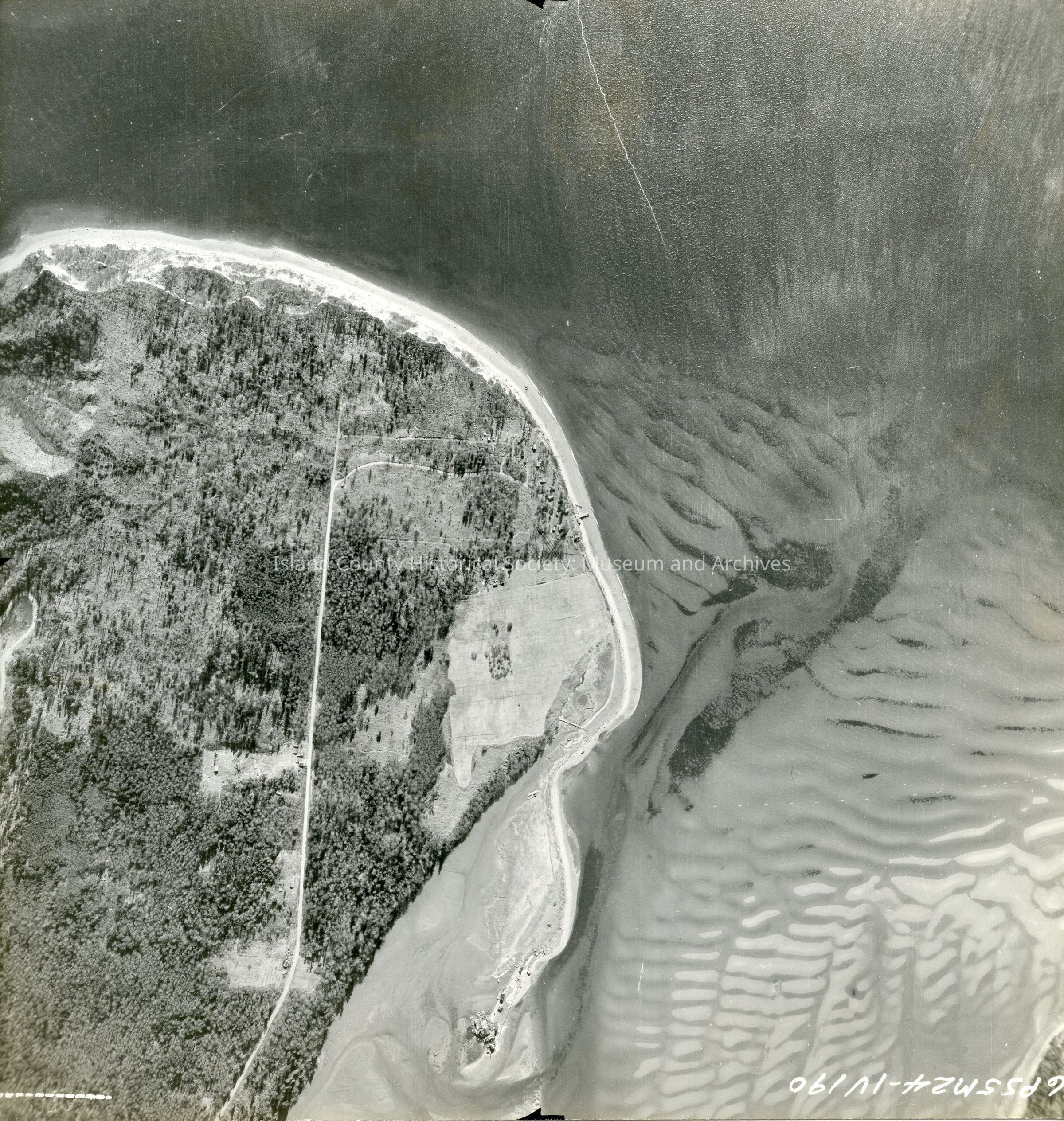 Tip of Possession Point with Scatchet Head to the West barely visitble, mud flats between the two points. Majority of land in E of photo