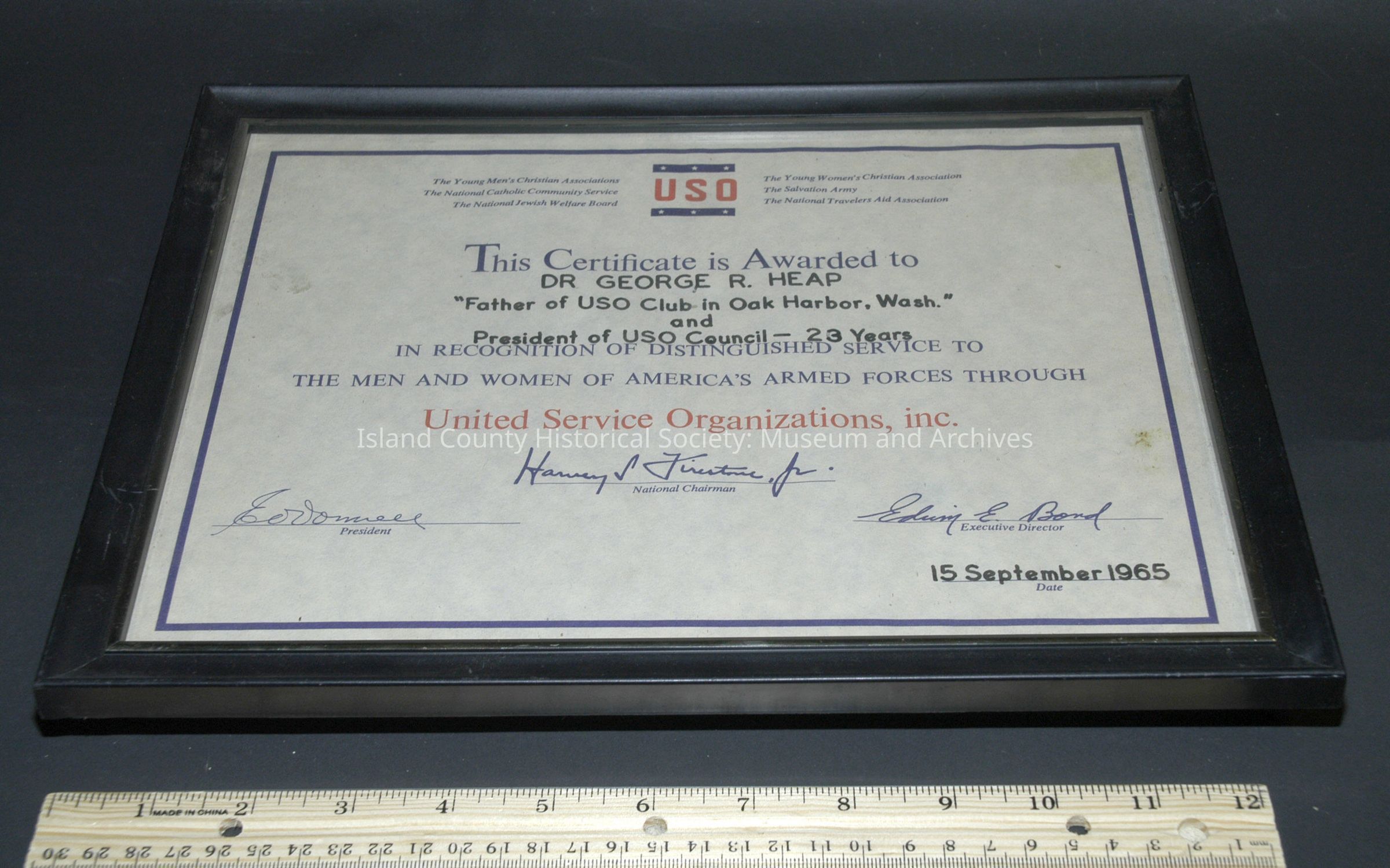 USO Award, "Father of USO" 1965, Dr. George Heap