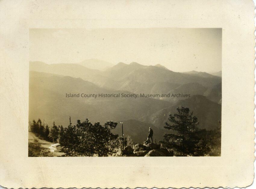 Photograph of a man standing on a hill. In the left bottom corner there is a car driving by. Photo stamp on the back: Oct 5 1942.