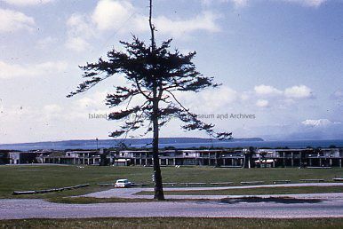 Photograph of a stripped tree in front of Fort Casey, likely c. 1950s or 1960s.Photograph Details