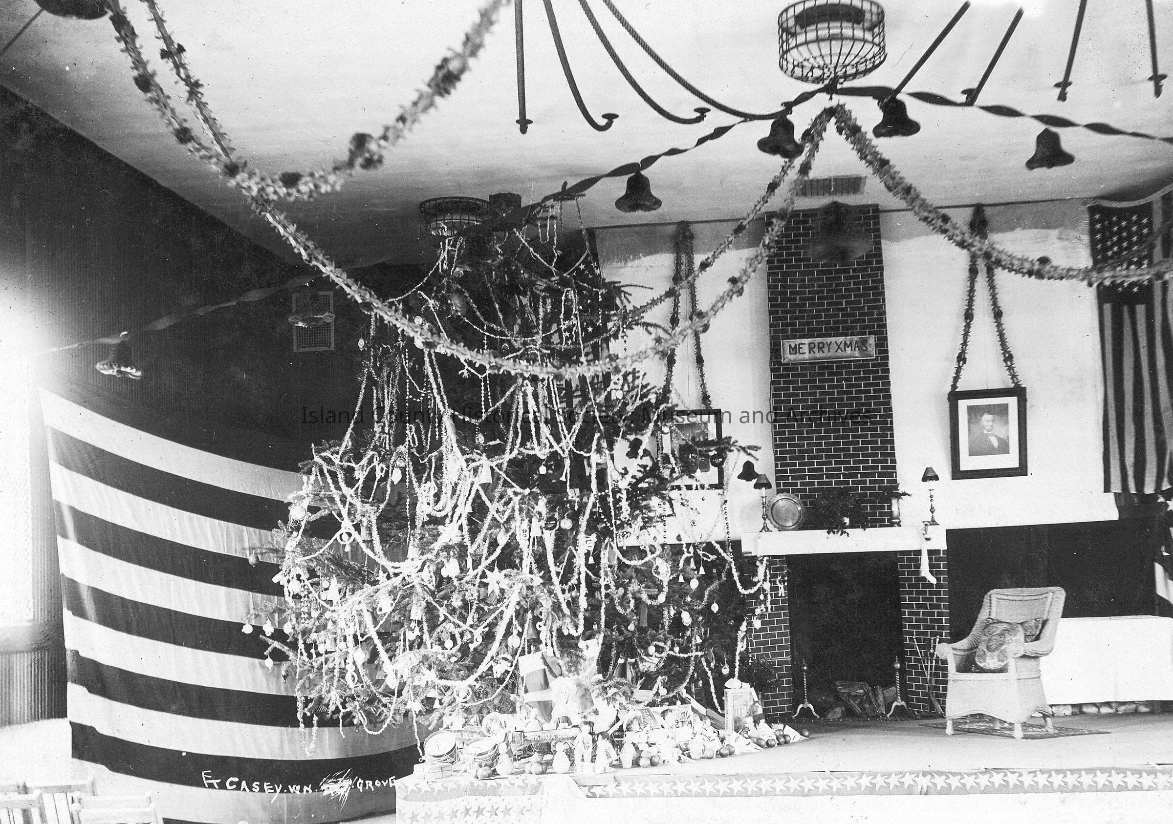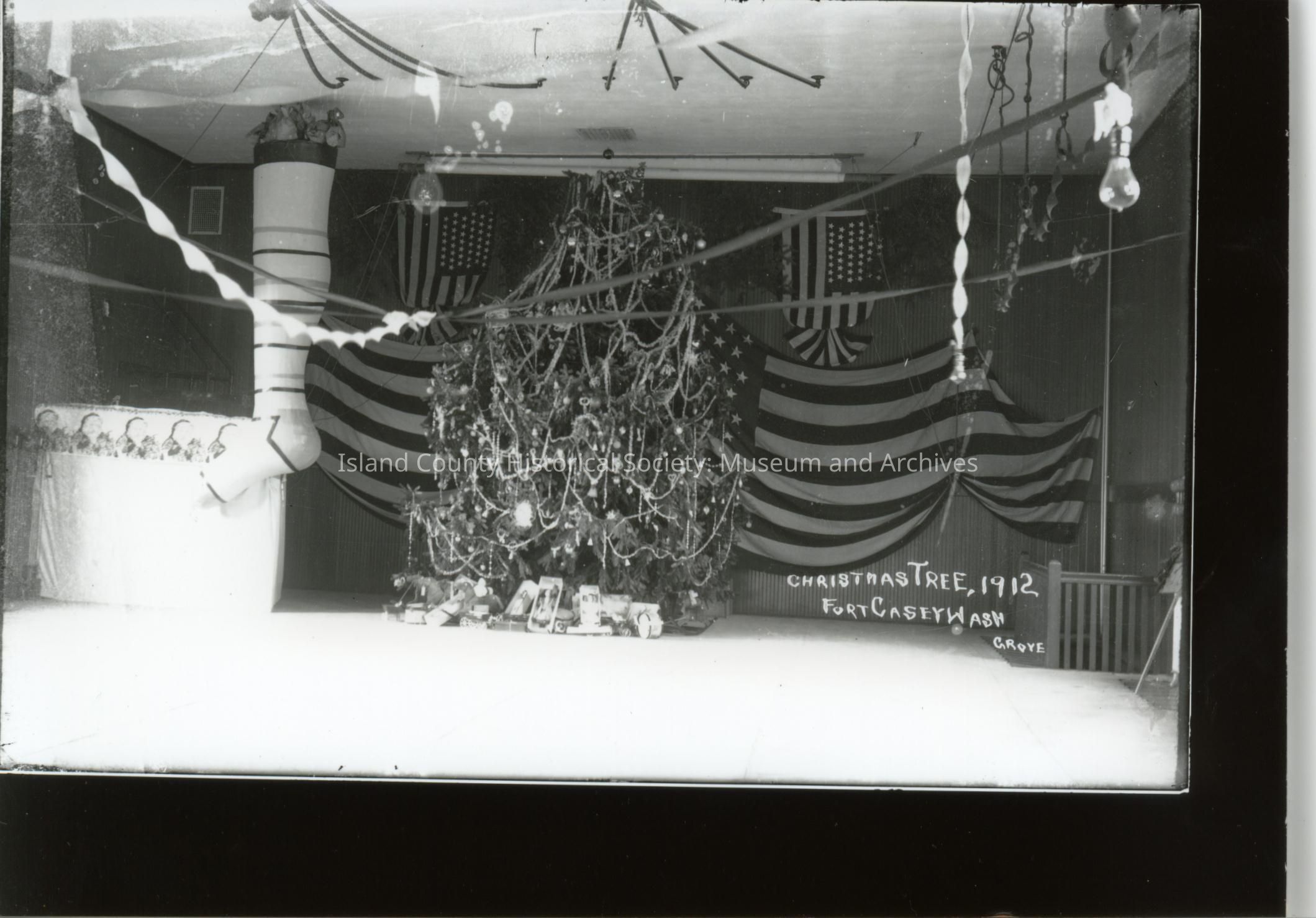 gym at Fort Casey decorated during Christmas -1912, date of second Christmas photo is unknownPhotograph Details