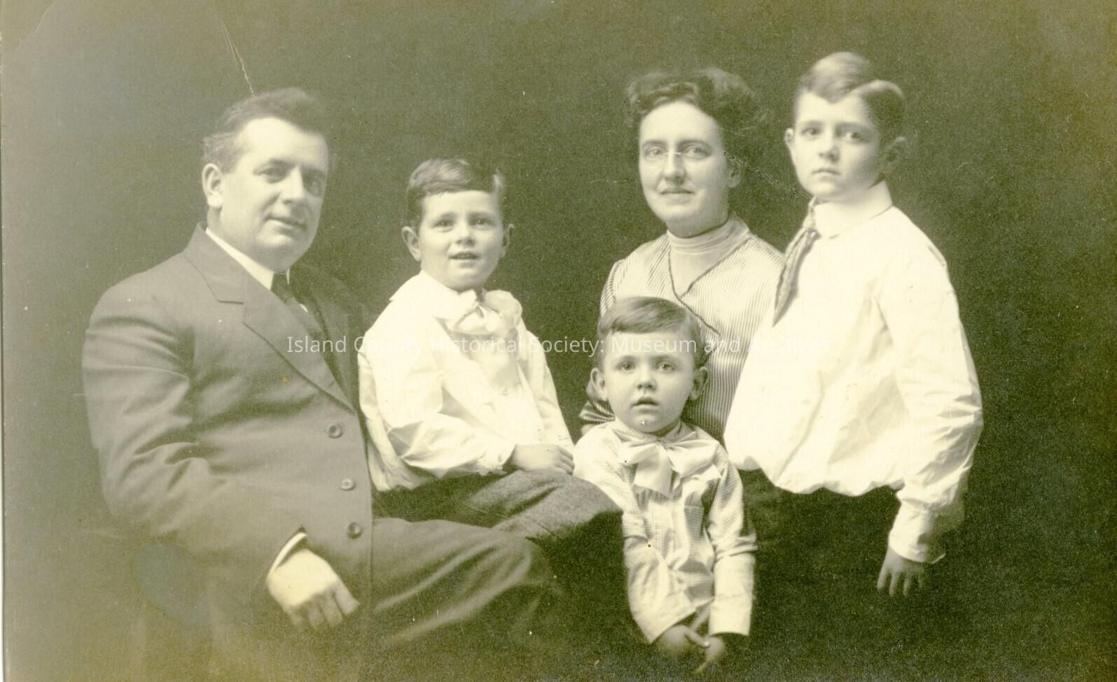 Rev. Robert Hartley and family. Was at Coupeville Methodist Church from 1908 to 1912. Boys Club Room was built during this time. Inscription on back of picture post card "We wish you all a Merry Christmas"Made/Created