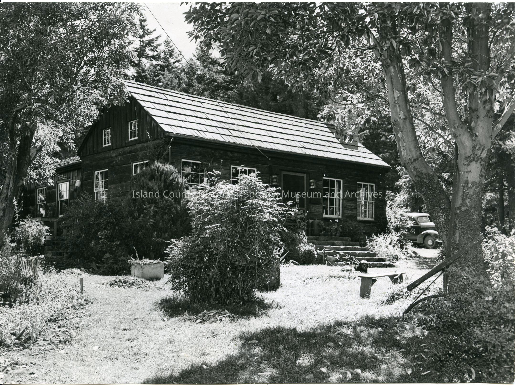 Photograph of the Hattie Swift Race house in Coveland. This house was built in 1851 by Jacob Smith and sold to Captain James H. Swift. It was later abandoned and was moved to Coupeville in 1928, when it was restored and became the home of Hattie Swift Race. Photo c. 1946.Photograph Details